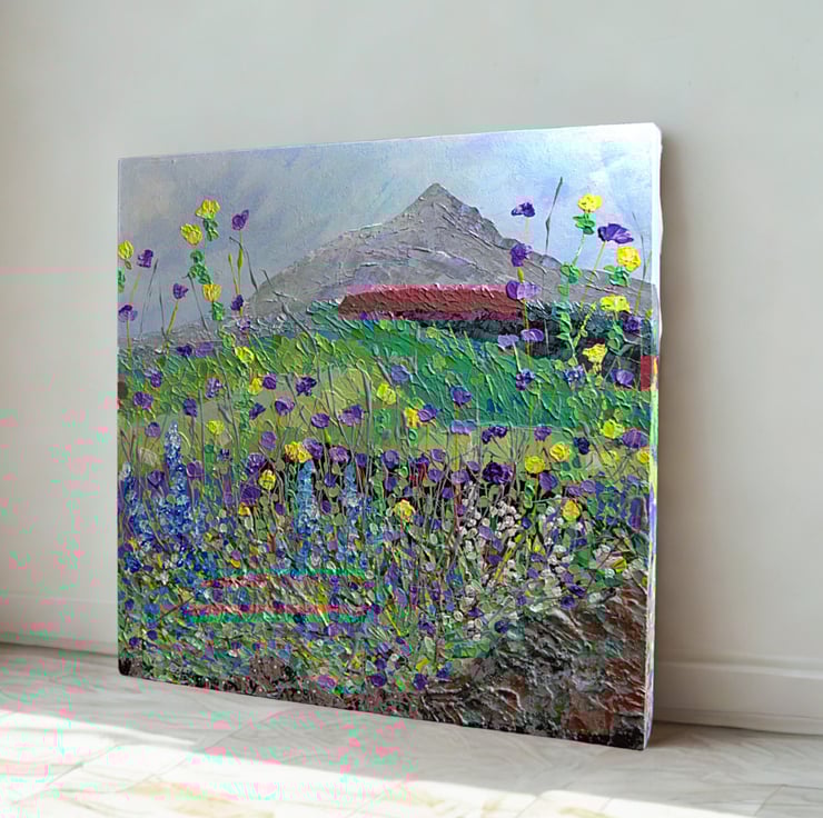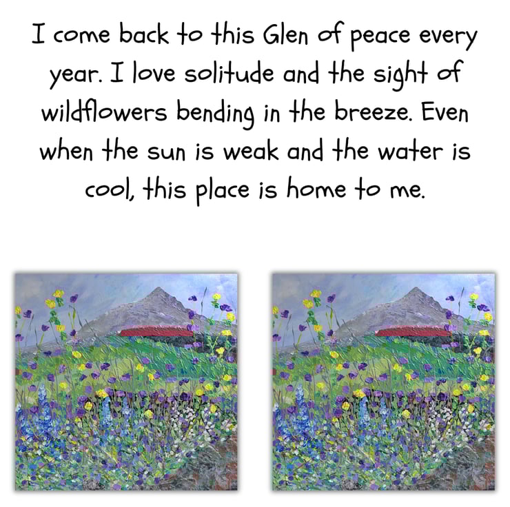 This is an original Scottish landscape based on my visits to the Glens in Angus. I have used acrylic paints on a primed, cradled wooden board. I have chosen a cool colour palette for this work to give a sense of fresh, invigorating air.
