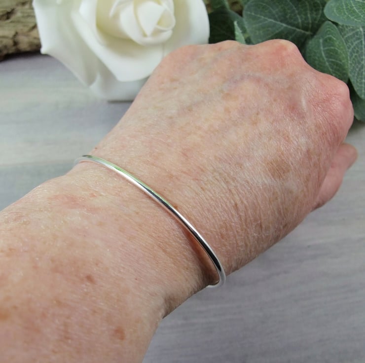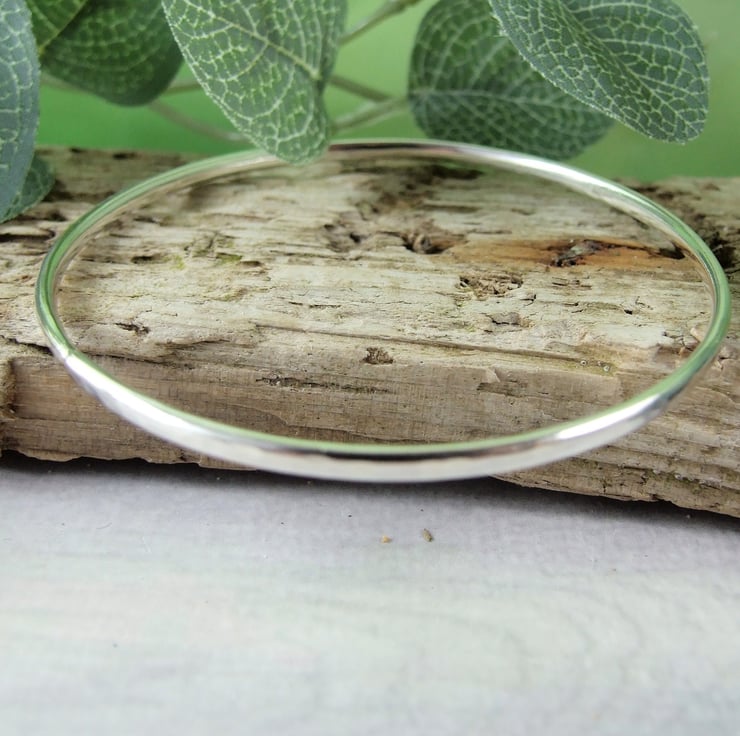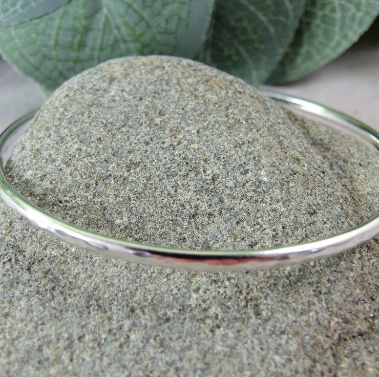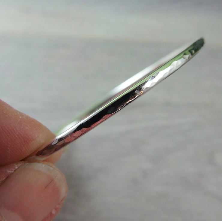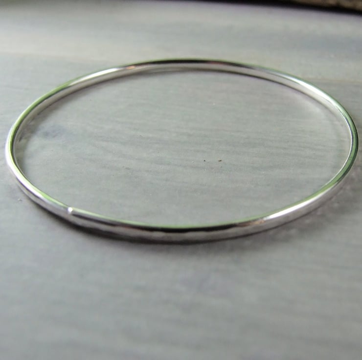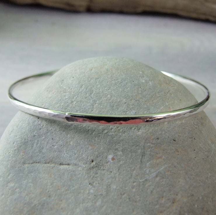 Hand forged Sterling Silver Bangle.Hammered finish to fit size small 19cm circumference.