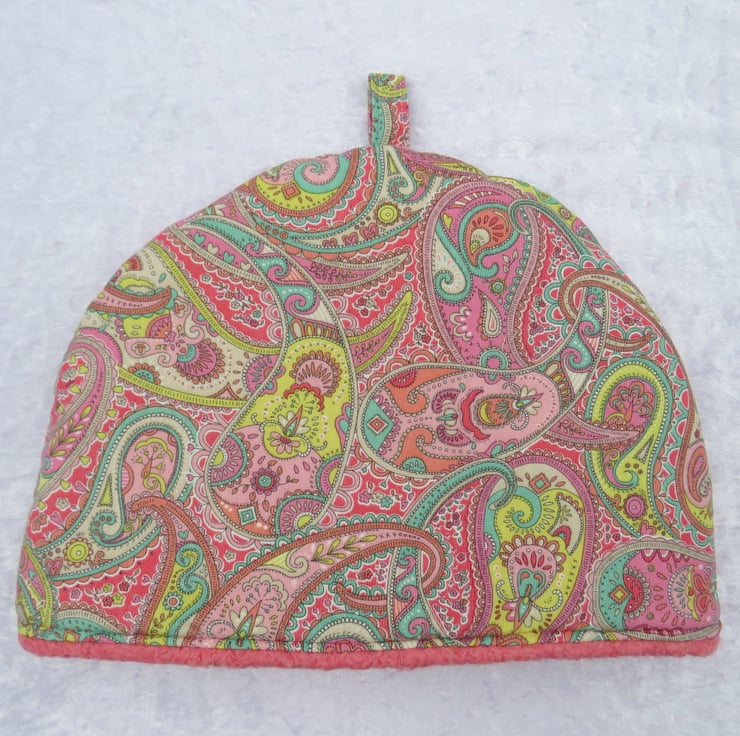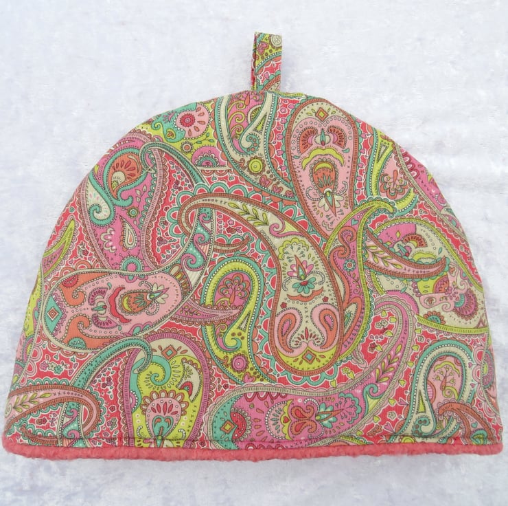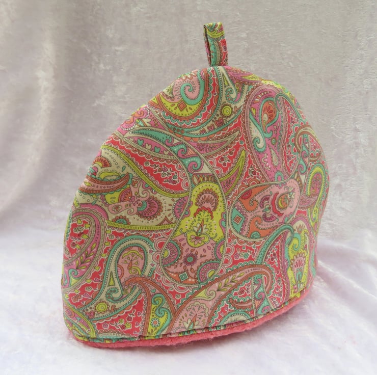 A small sized tea cosy, made to fit a 2 cup teapot.