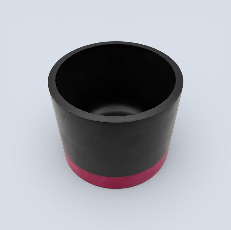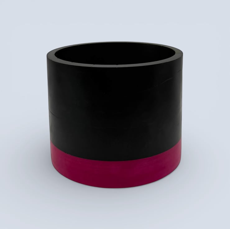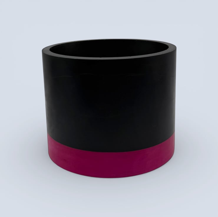This planter was inspired by simple colour blocking and bold modern interiors where a single band of colour transforms an otherwise minimal form. The deep black body gives the pot a strong, grounded presence, while the vivid pink base adds a bright lift of colour. The contrast creates a clean contemporary look that frames the green of houseplants beautifully and adds a playful pop of colour to shelves, desks and windowsills.
