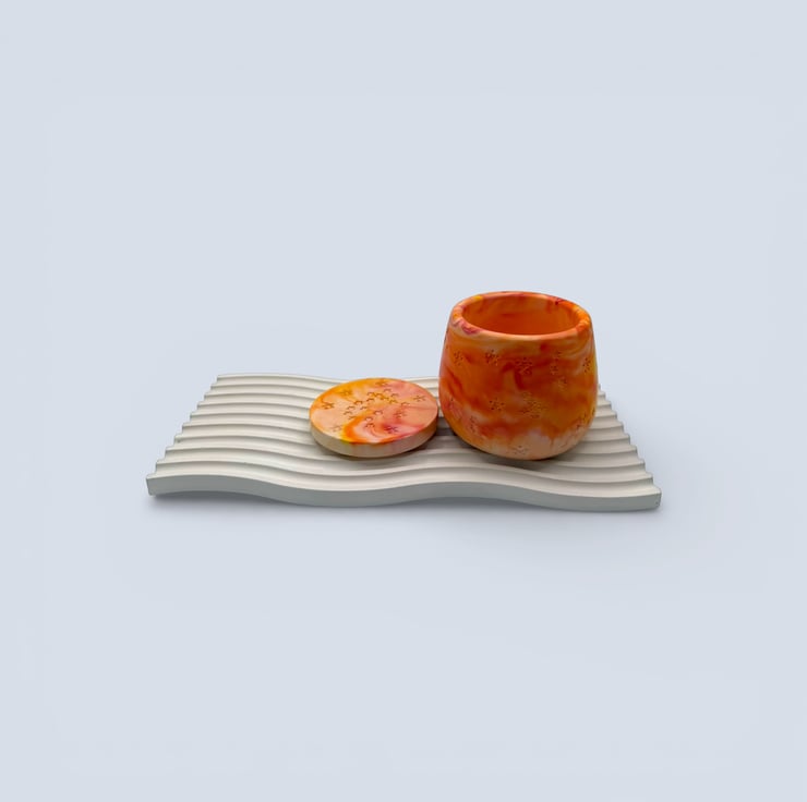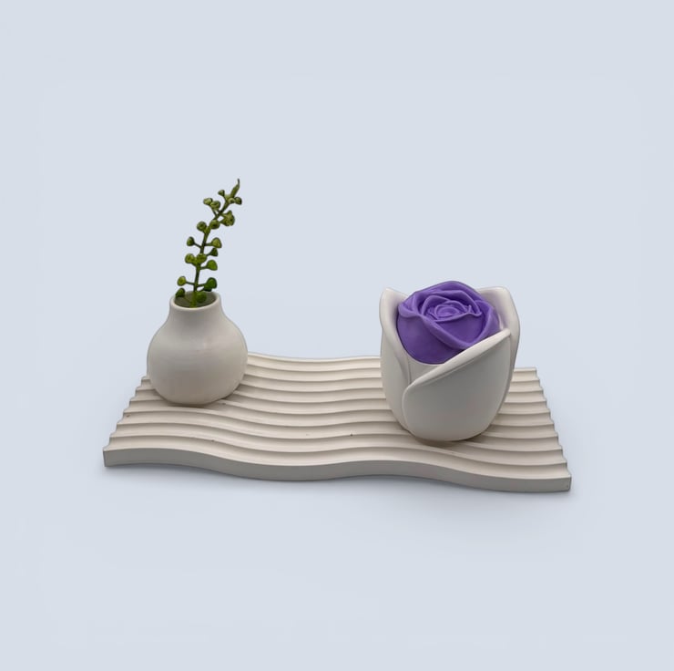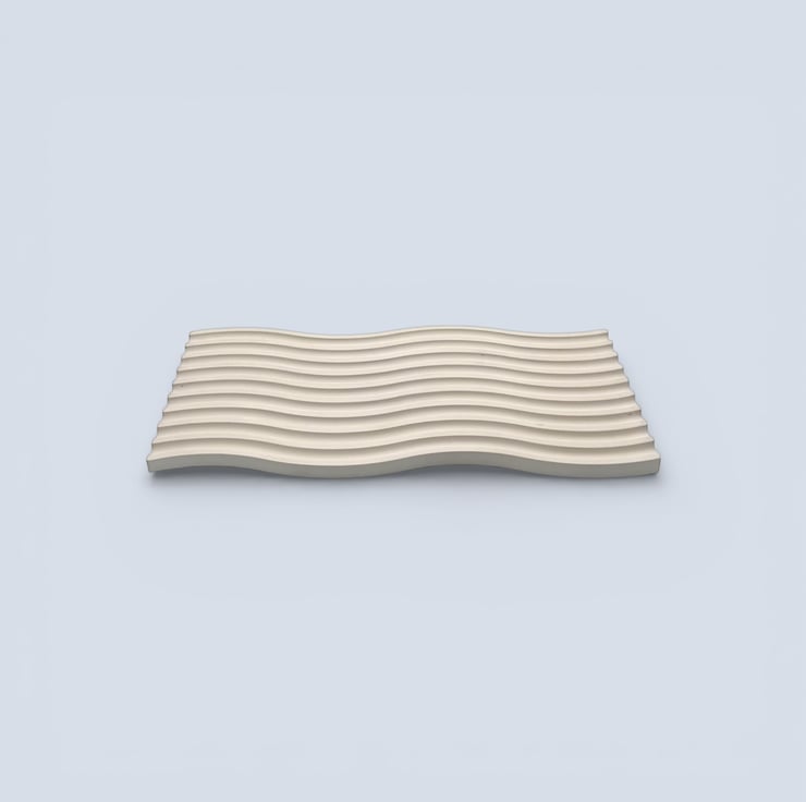 This tray was inspired by the gentle movement of water and the rhythm of flowing waves. The repeating curved ridges create a sense of flow across the surface while the soft white colour keeps the design clean and minimal. The sculptural wave pattern adds quiet visual interest, making the tray a calm decorative accent for modern interiors and a beautiful way to display jewellery, candles or everyday essentials.