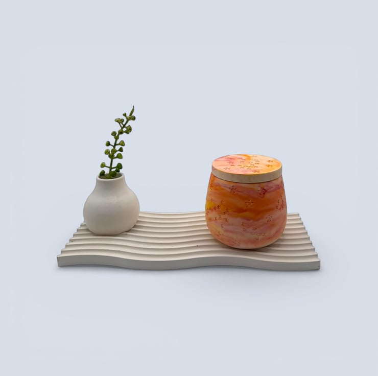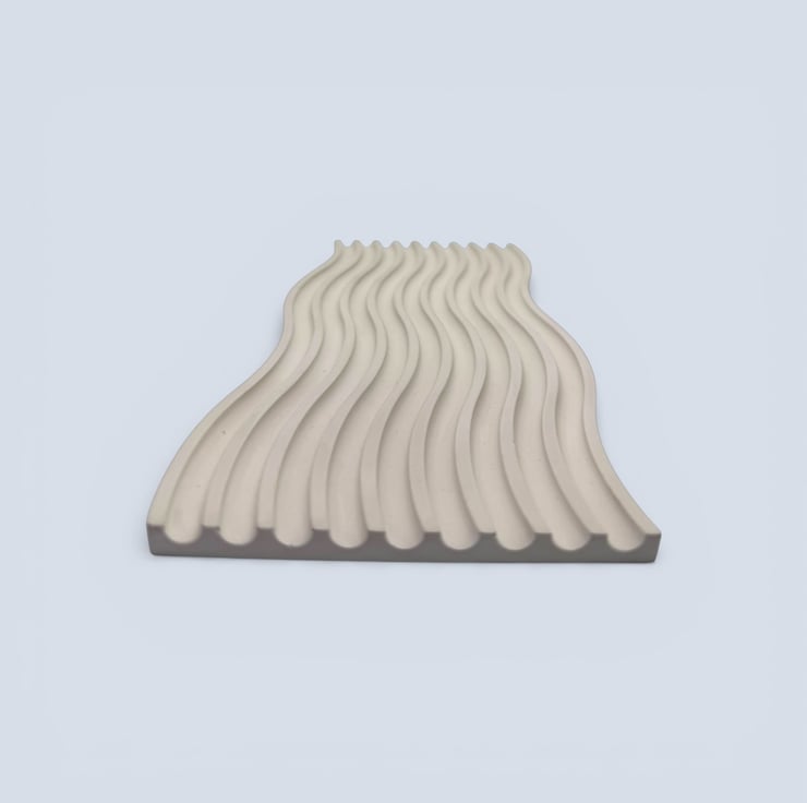 Each tray is handmade in my home studio from a water-based mineral material with a smooth, stone-like feel. The carefully shaped ridges create a tactile surface that highlights the flowing wave design and gives the piece a refined, sculptural quality.