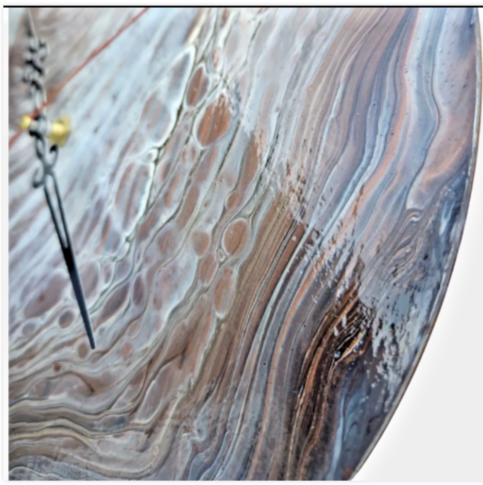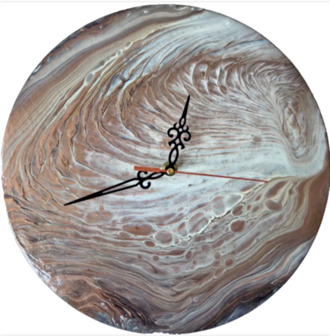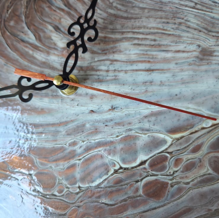 Copper Radiance features a flowing design inspired by the natural movement of earth and light. Hand-painted with rich copper and white tones, it brings a sense of calm and steady optimism to your wall. This piece serves as a simple, grounding reminder to appreciate the natural rhythm of every hour.