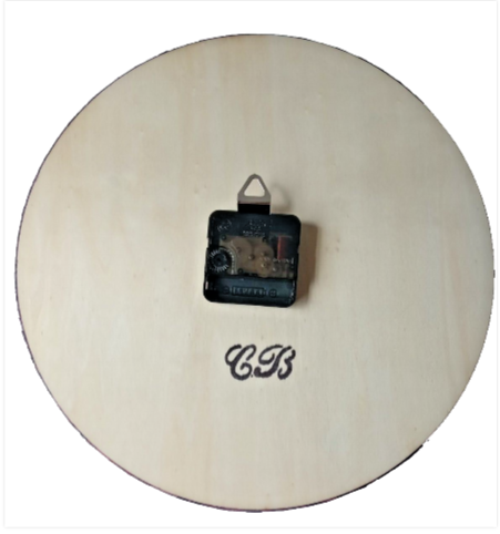 Hand-painted wall clock on a wooden circle.