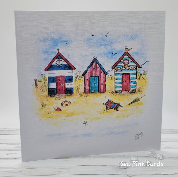 Beach Huts Card - blank card, birthday, beach, coastal card