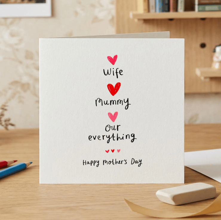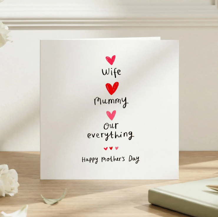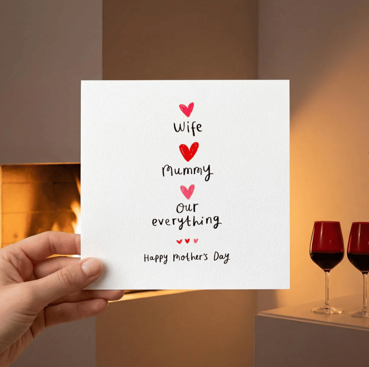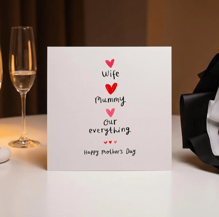 Sometimes, less is more. Designed with elegant typography and delicate hand-drawn hearts, this card is for the mum who deserves to know she is your world. This Mother’s Day, celebrate the woman who plays every part. Our 'Our Everything' card features a clean, hand-lettered design and minimalist иллюстраций for a modern, heartfelt feel.