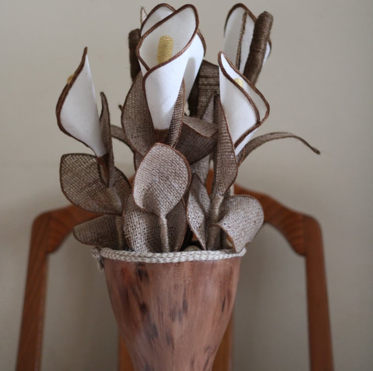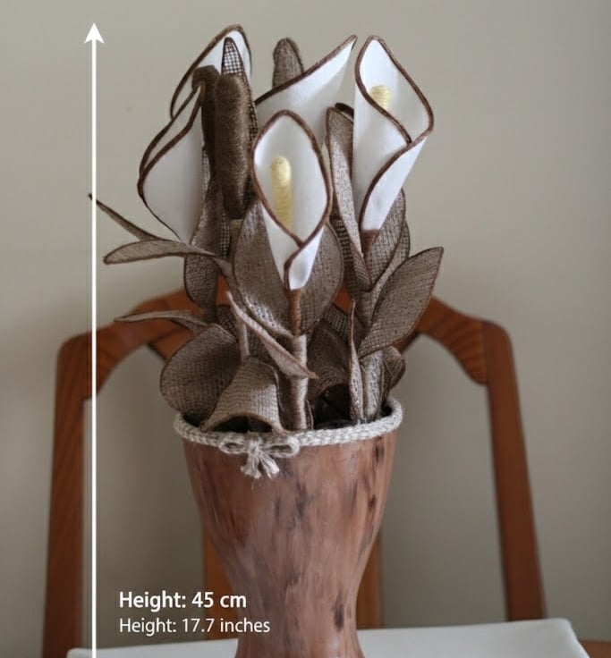 Large Vase, Gifts for mom, Artificial Calla Lily Burlap and Fabric Vase, Unique