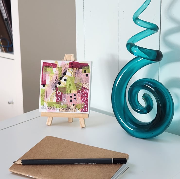 This is an original small abstract artwork created using high quality artist materials. Designed to bring a pop of colour and texture to any space, it’s perfect for shelves, desks, walls, or gifting.