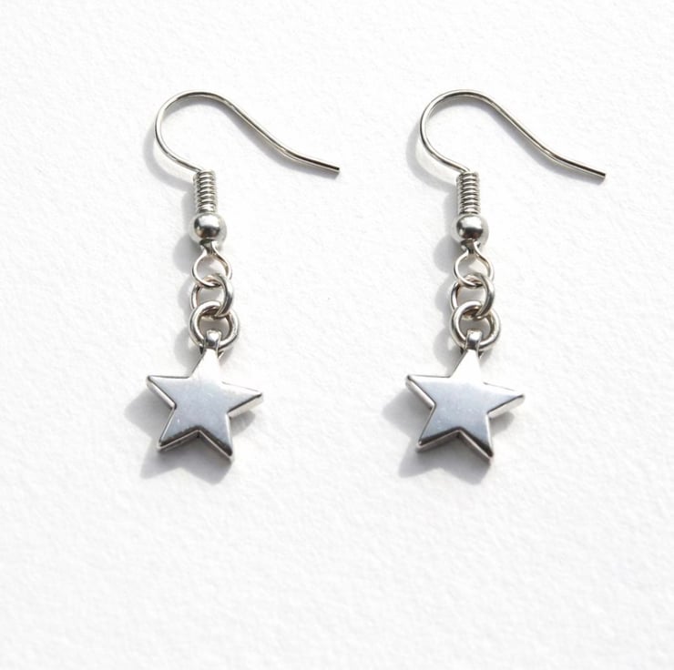 Add a subtle celestial touch to your jewellery collection with these minimalist silver star dangle earrings.