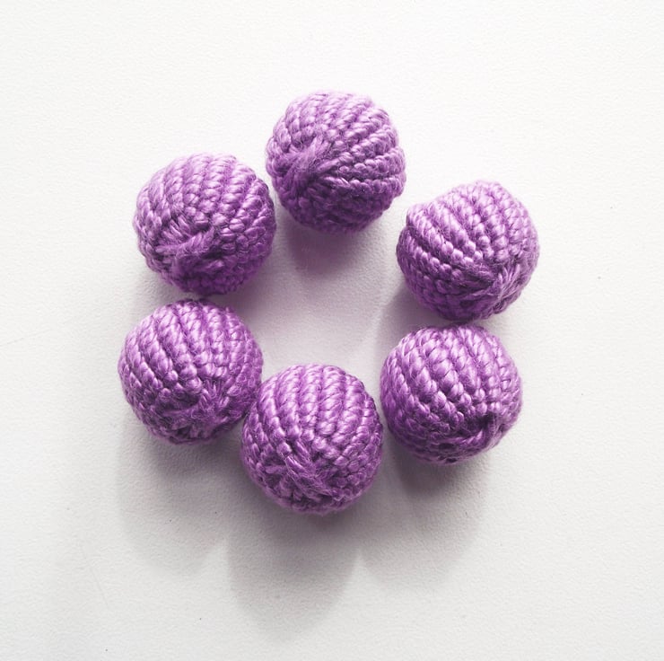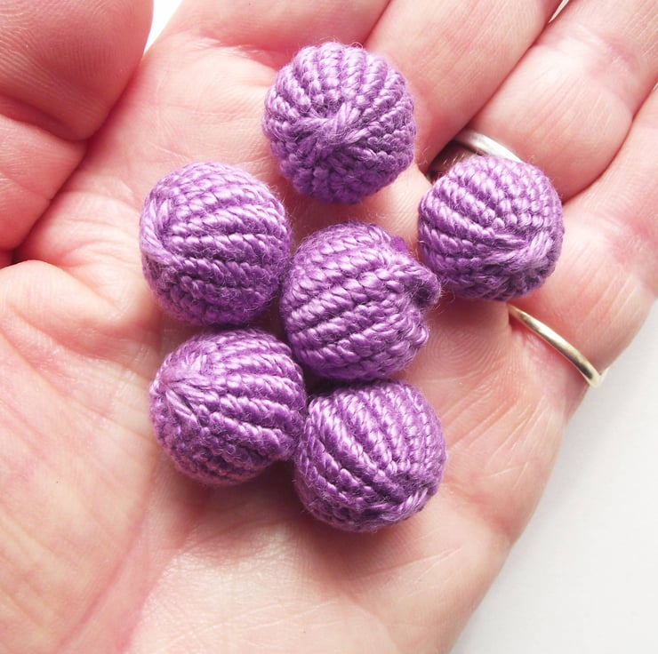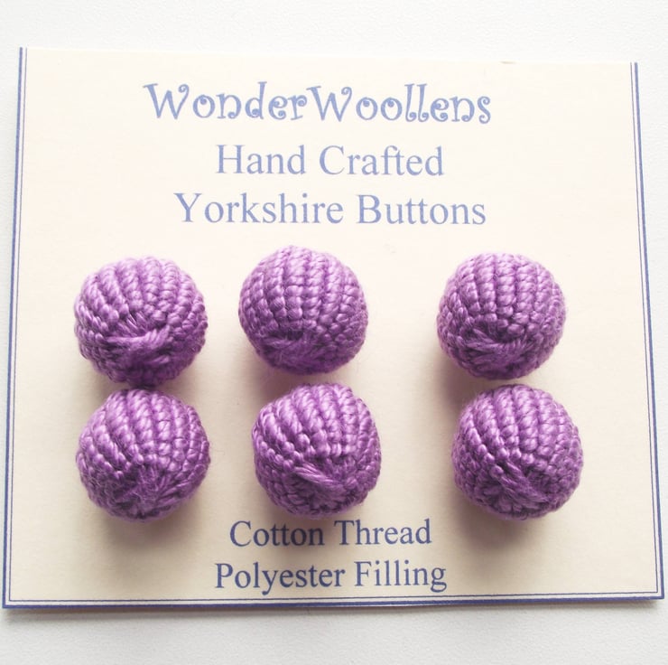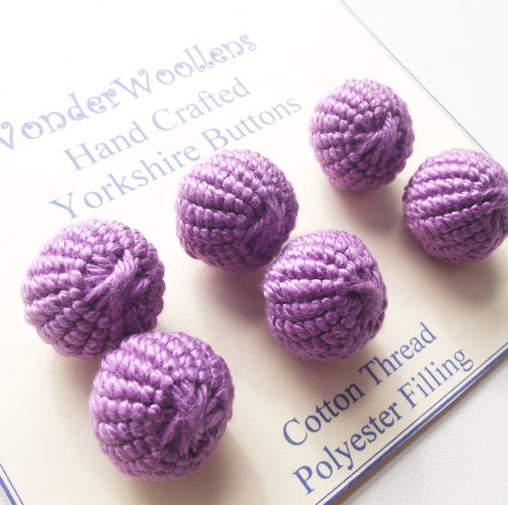 This listing is for a set of six mid purple spherical buttons, which have been intricately crafted using cotton thread. They are stuffed with safe polyester stuffing. They have integral shanks for ease of attaching to clothes, bags etc. As well as being used as functional buttons, they could be used as embellishments. Ideal for re-enactors.
