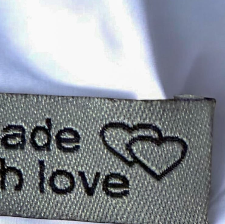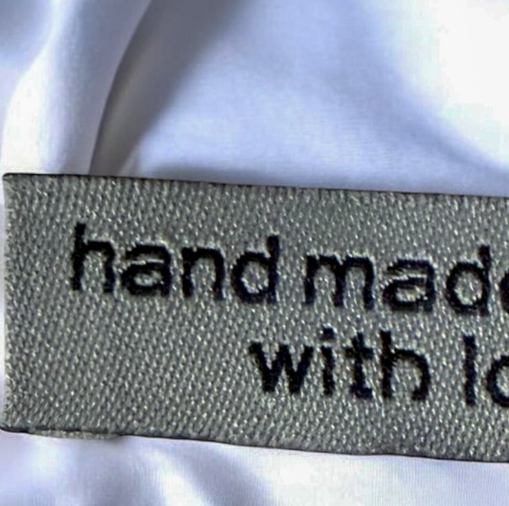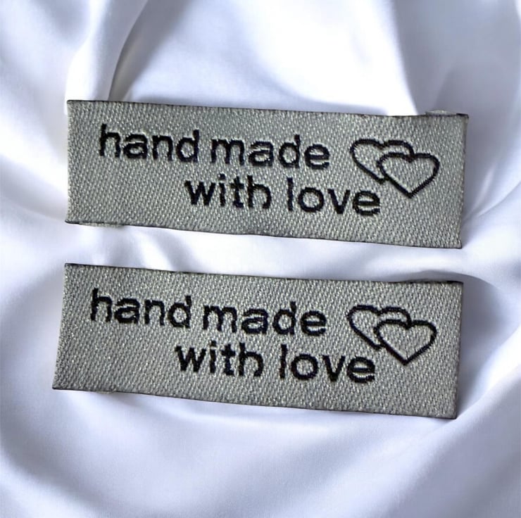 Woven “Hand Made” Label, pack of 10, colour Grey with Black wording, Washable, colour fast, craft labels.