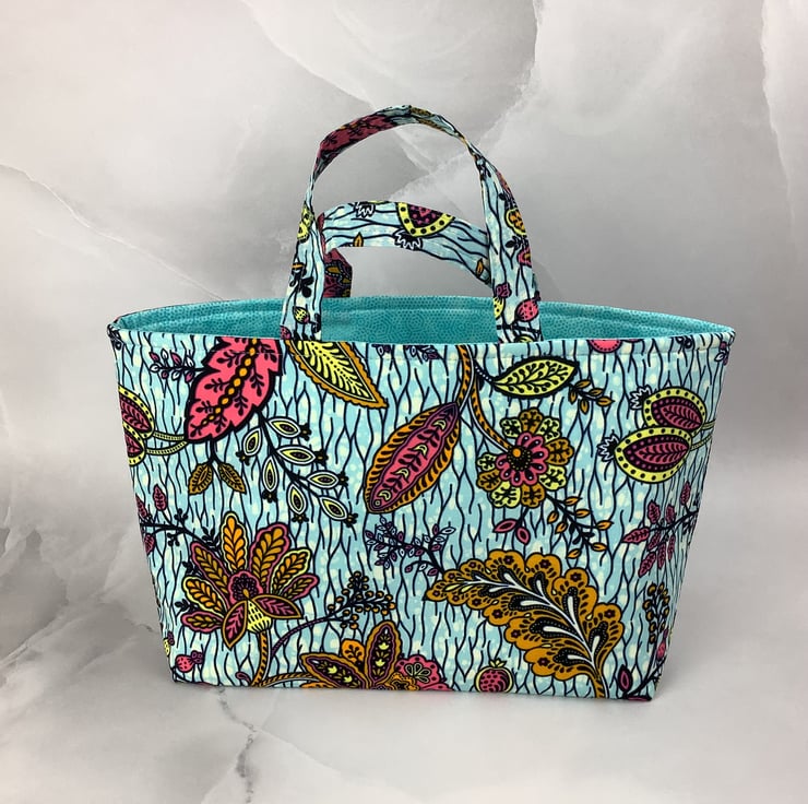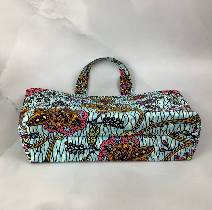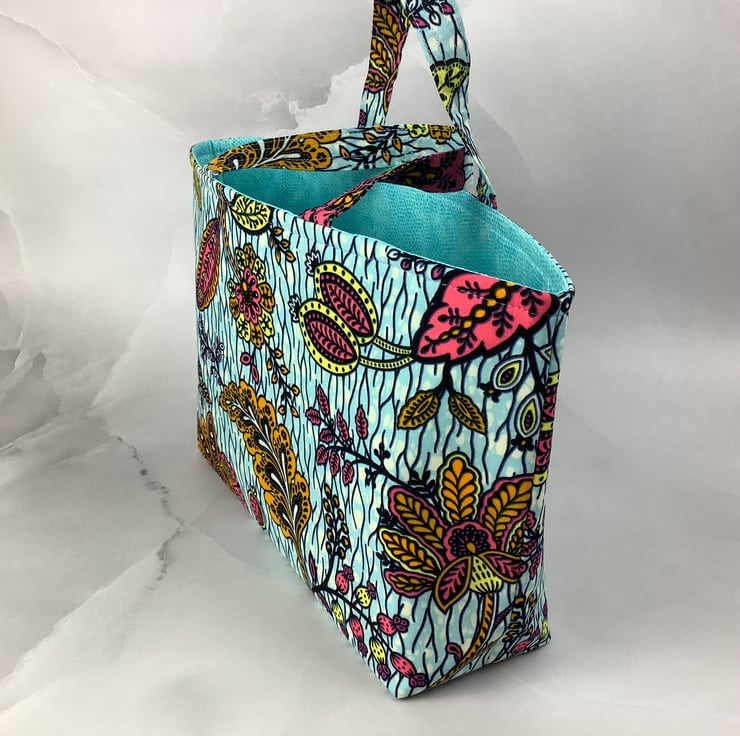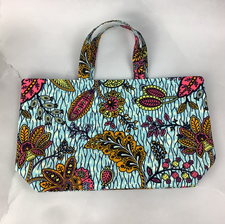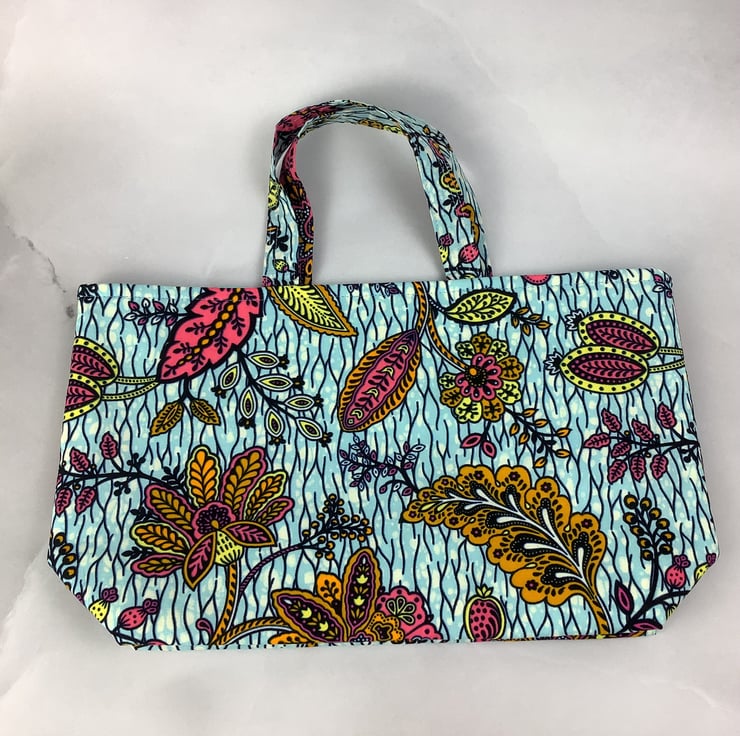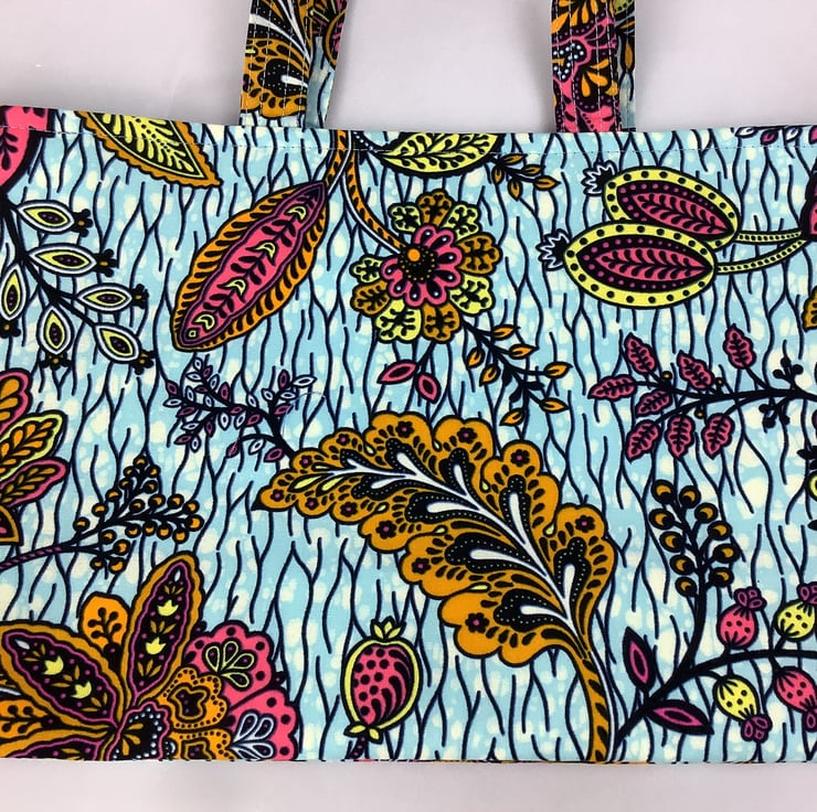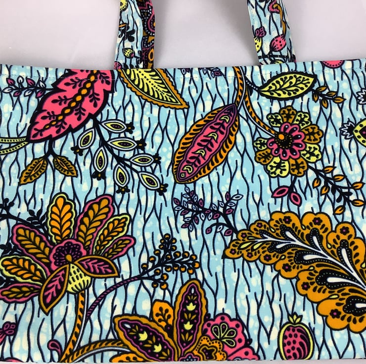 A stunning tote bag in a bold cotton fabric in a gorgeous African print. Perfect for shopping, work and holidays and folds flat for storage.