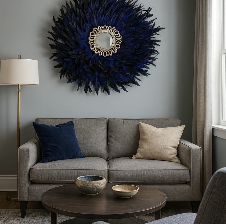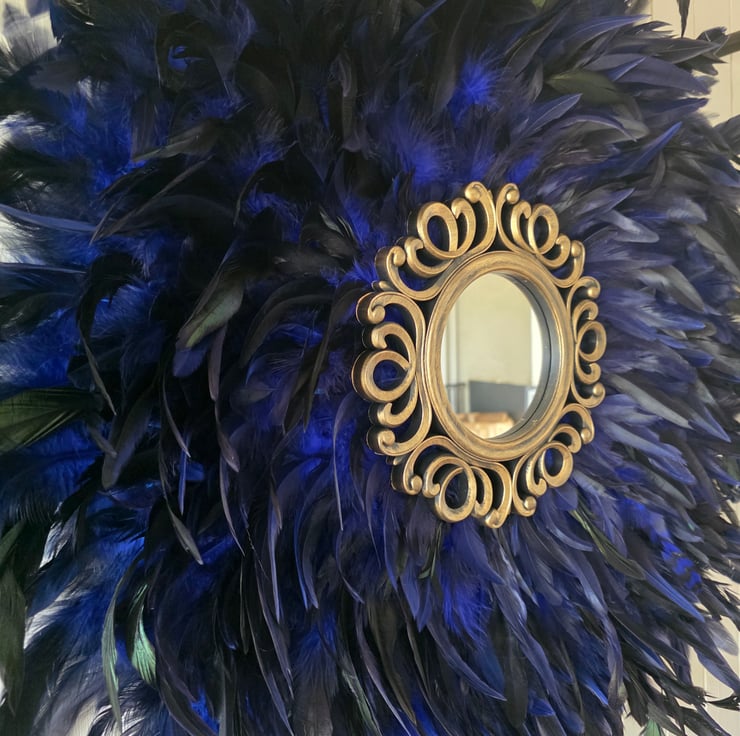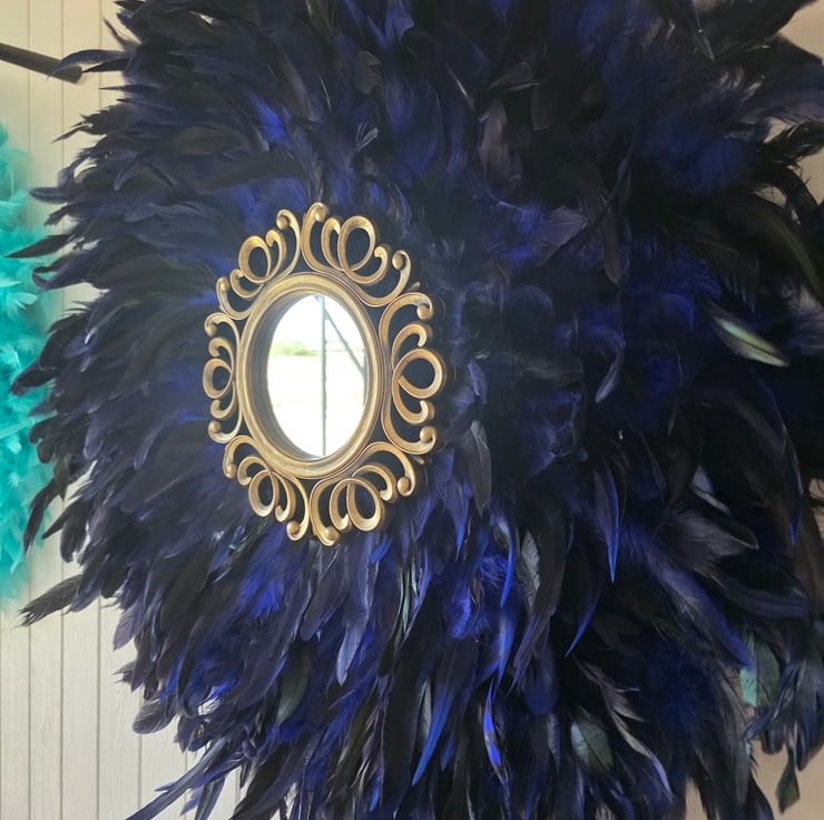 Bring texture, artistry, and an undeniable bohemian vibe to your space with this stunning Handmade Feather Mirror.