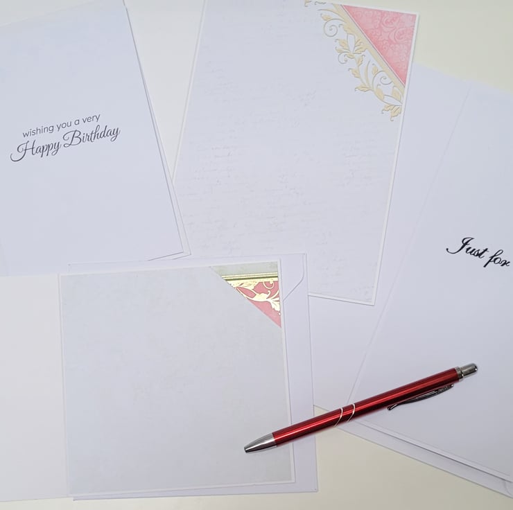 - The 'Thank You' card and the 'Best Wishes' card have been lined with decorative papers but are otherwise blank inside for your own personal message. (See Pictures for details)