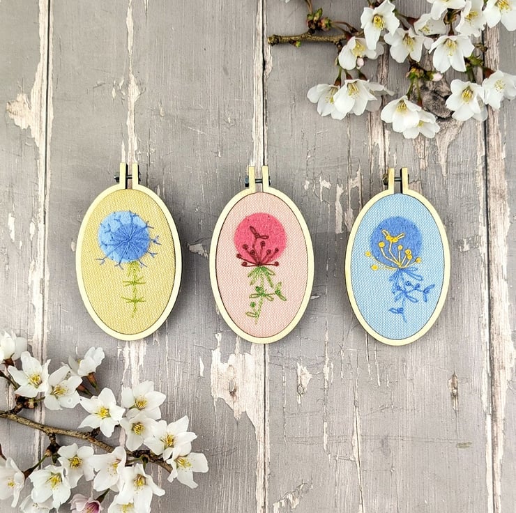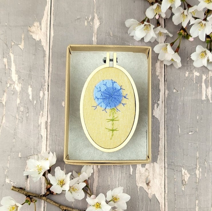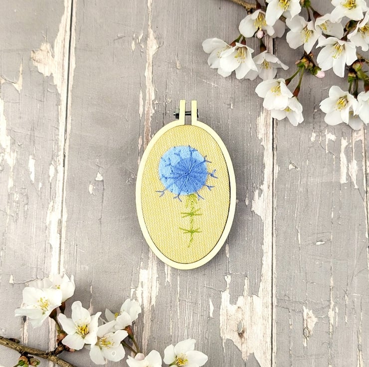 This listing is for a 40mm x60mm embroidered alium brooch. Each one is hand embroidered with straight stitch and french knots .