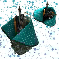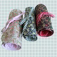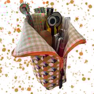 Sewn in a soft, printed cotton and fully lined, with a zipped pocket for essentials, it slips over your A5 notebook (included) with an elastic loop so everything stays together; no more rummaging in bags for pens.