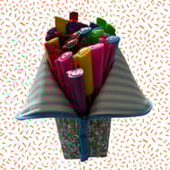 This handmade Book Buddy is a simple little helper designed to keep your pens and bits tidy while you write, plan or read.