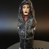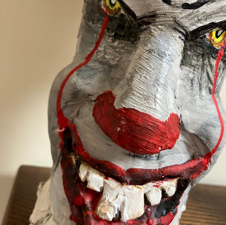 This sculpture makes a haunting statement on a bookshelf, in a display cabinet, or as part of a dedicated horror collection. Because it is handmade, you are getting a piece of art that cannot be replicated.
