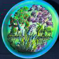 A hand painted and fired glass vase by Andrew Jenkins