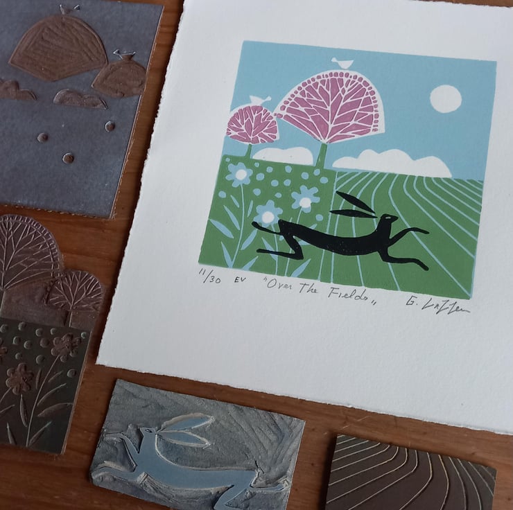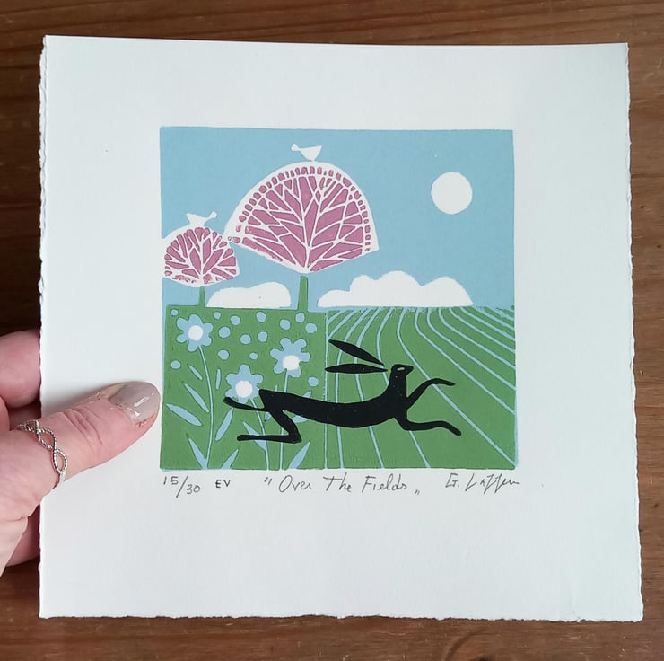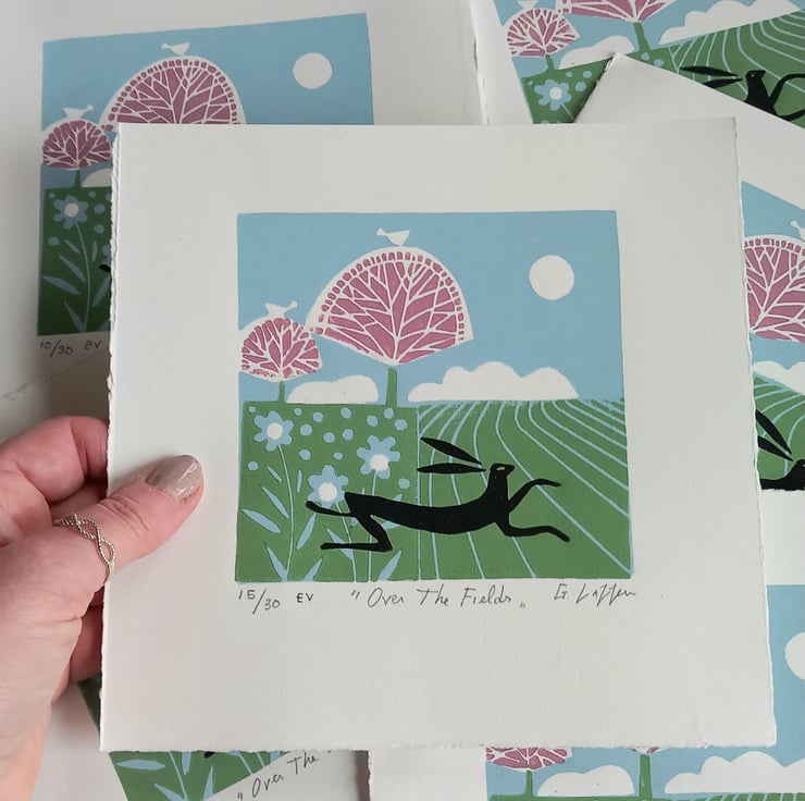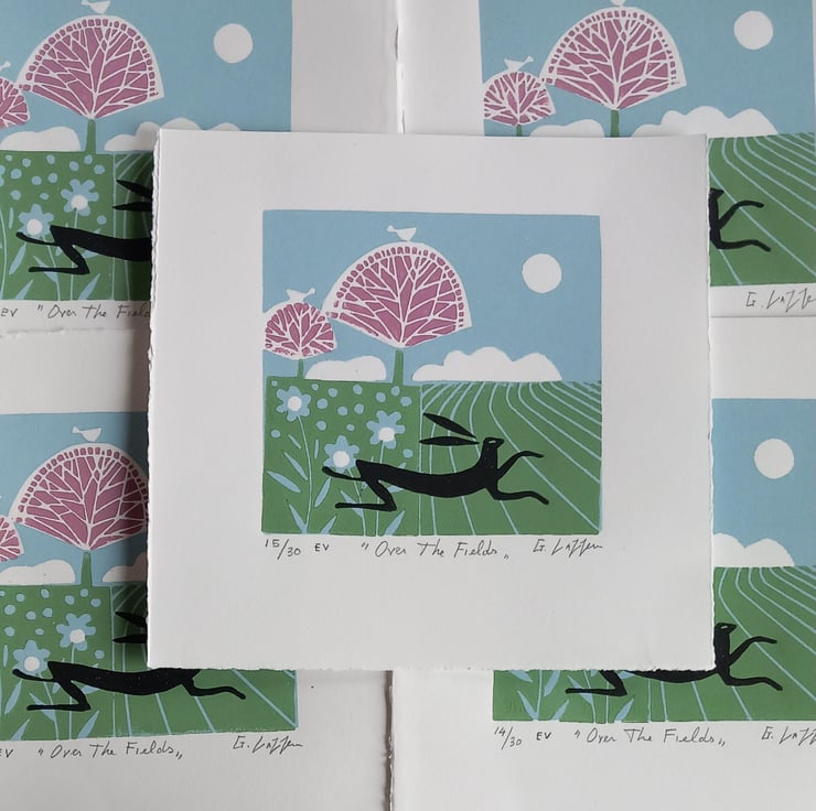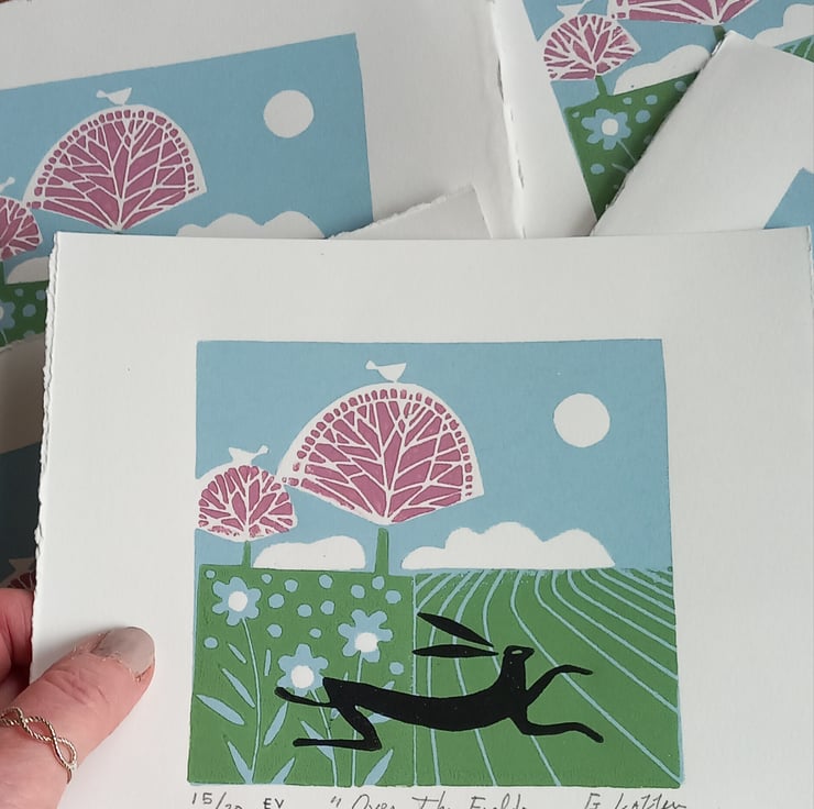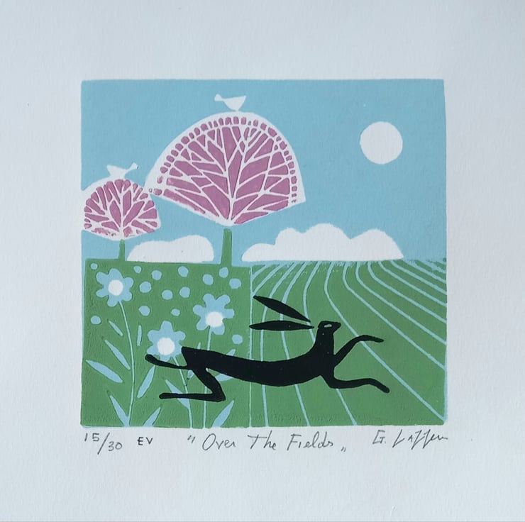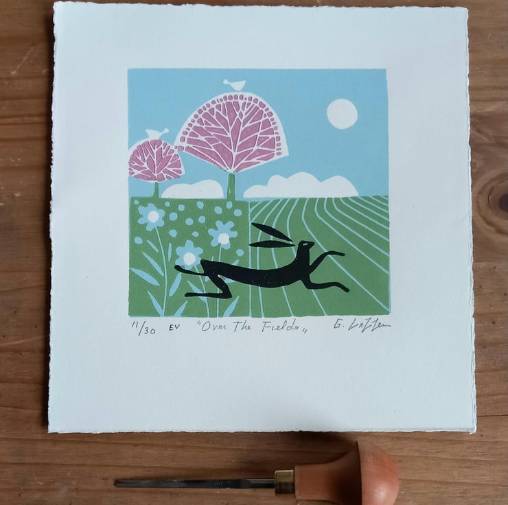" Over the Fields "Original Linocut from a varied Edition of only 30.