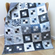I have machine stitched a traditional grid design across the whole quilt. This stabilises the three layers (front, wadding and back) as well as adding a beautiful, timeless texture to the quilt. The edge of the quilt is bound with a double layer of cotton fabric neatly hand stitched in place.