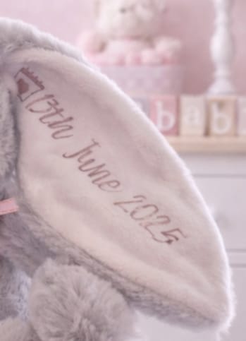 This adorable soft bunny makes a beautiful personalised keepsake gift for a newborn, baby or young child.