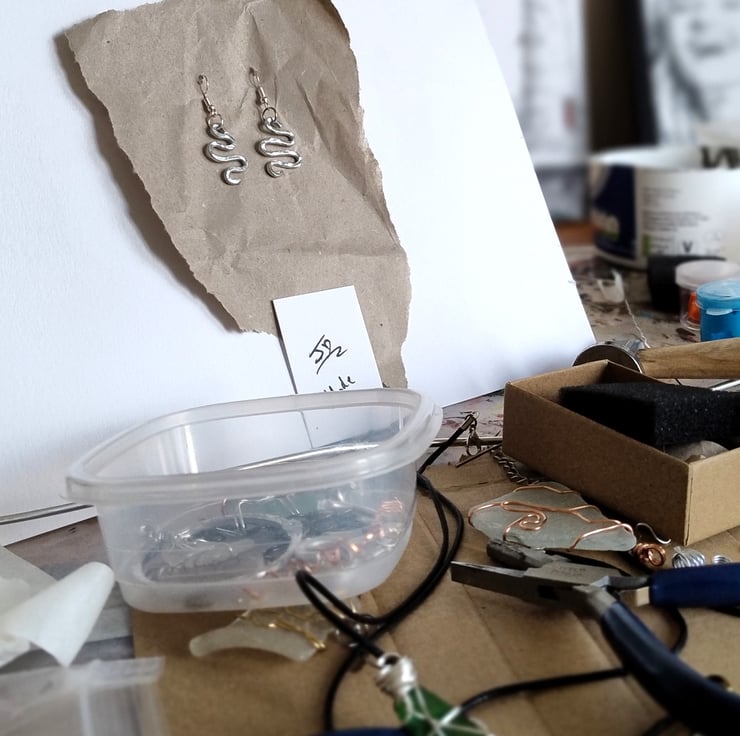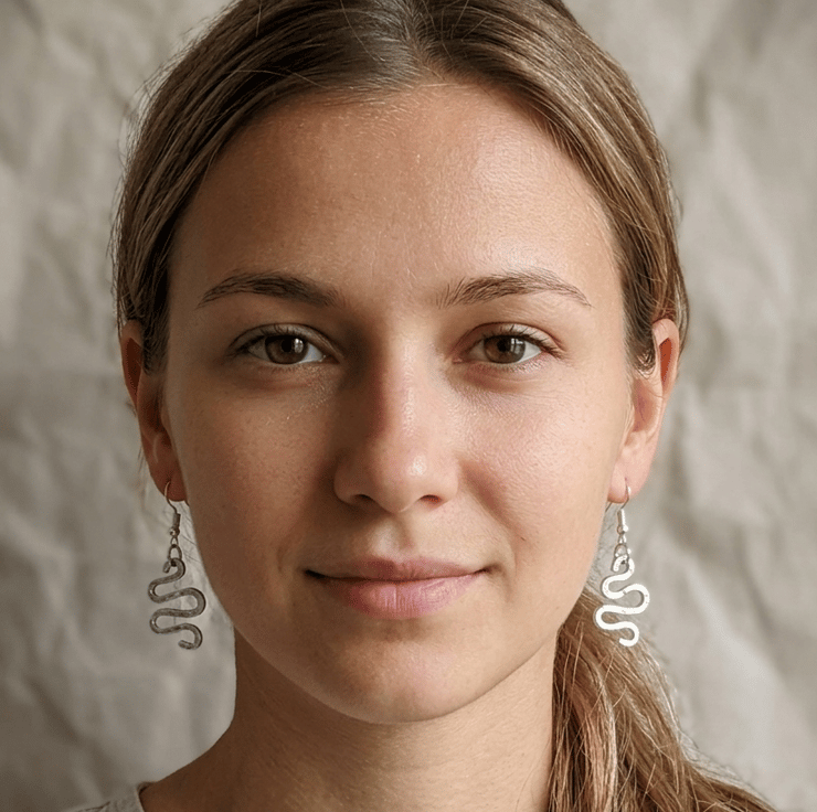 Embrace a touch of ancient symbolism with these hand-crafted snake earrings. Each pair is meticulously shaped from lightweight aluminium wire and hand-hammered to create a unique, shimmering texture that catches the light with every movement.
