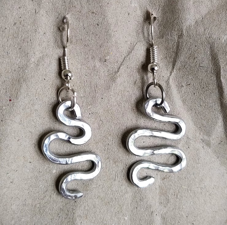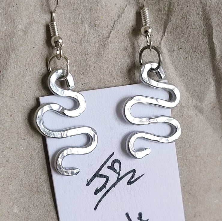 Hand-Hammered Aluminium Snake Earrings – Minimalist Serpent Drop Earrings