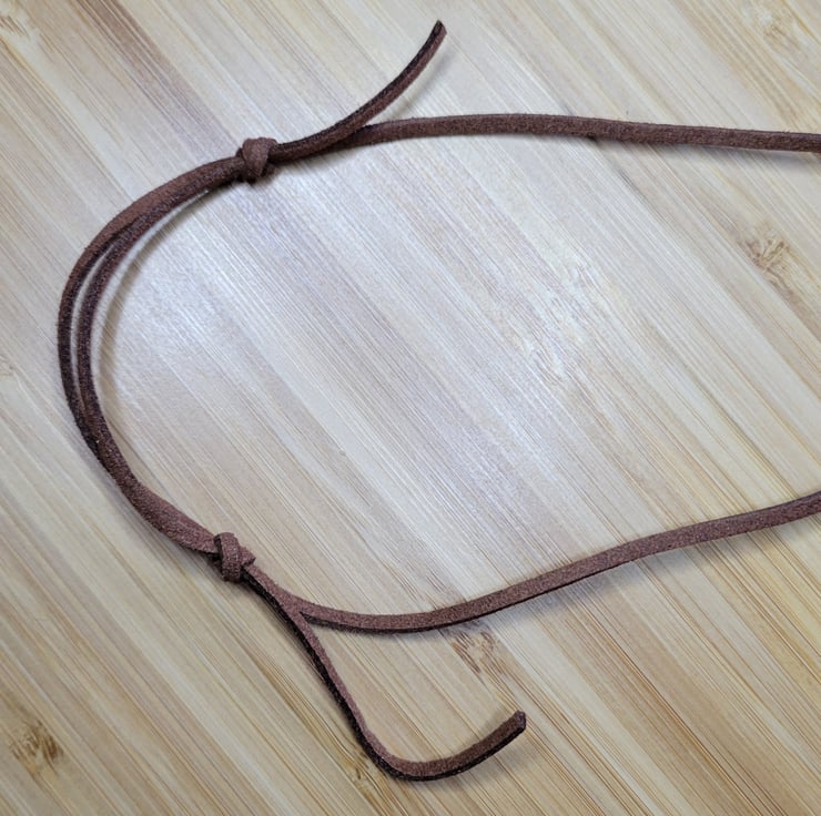 Each pendant is uniquely shaped from Fimo polymer clay, pastel painted, then baked and sealed with a clear varnish. They are hung with a black or brown suede cord tied with a sliding adjustable knot.