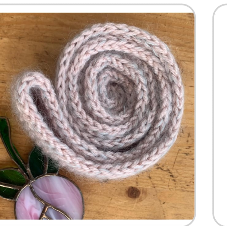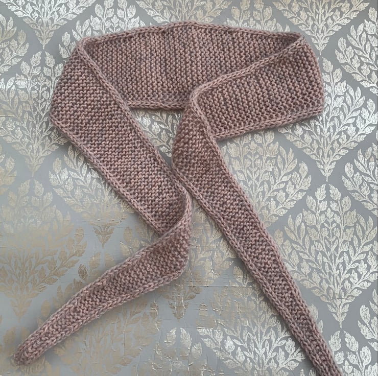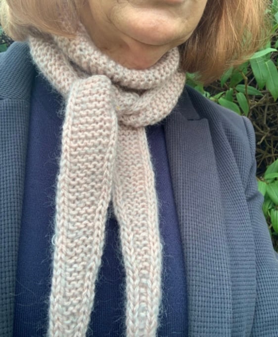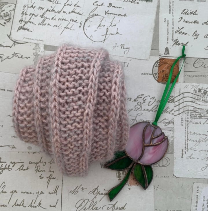 I have knitted this in two yarns one of which is a beautifully exquisite Debbie bliss mohair and silk mix. Knitted in a very subtle pale pink and grey palette