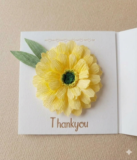 hand crafted from high quality Italian crepe paper, each petal is hand shaped to create a flower that literally pops off the card,