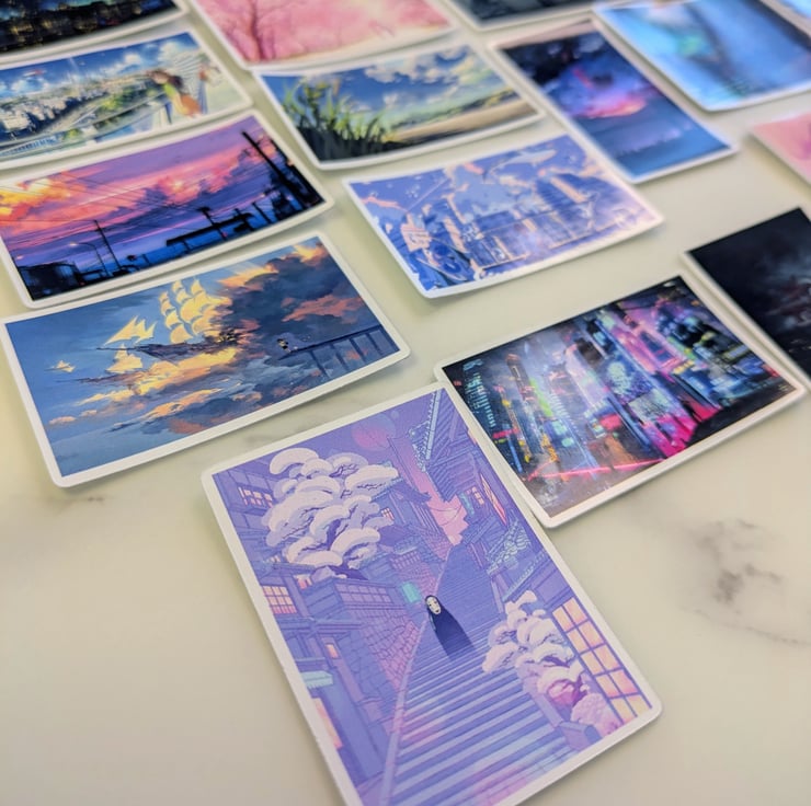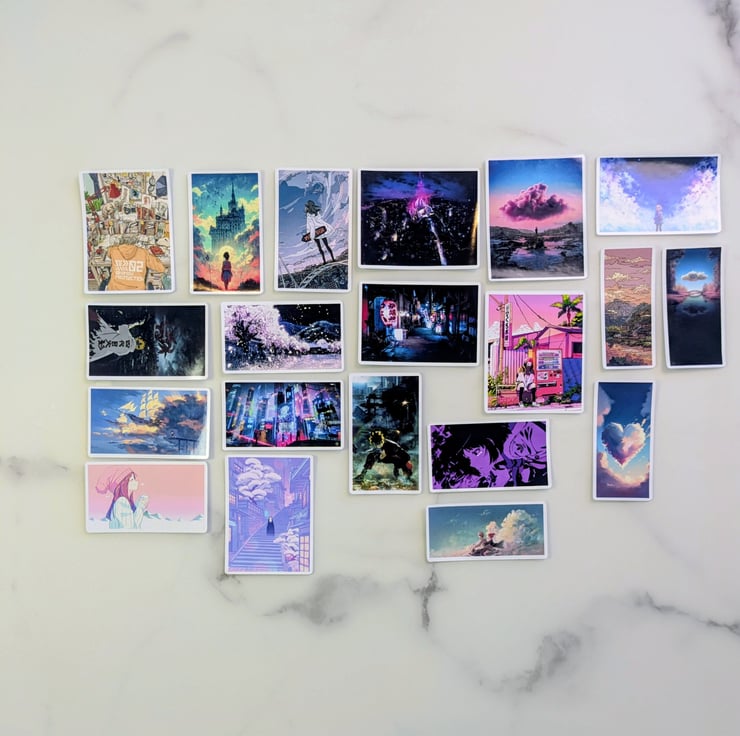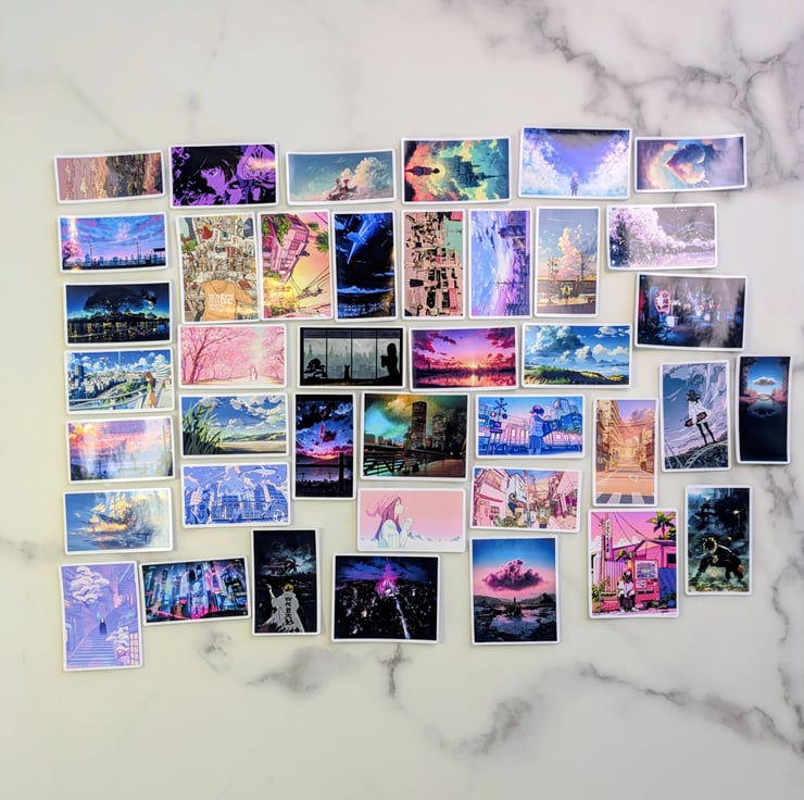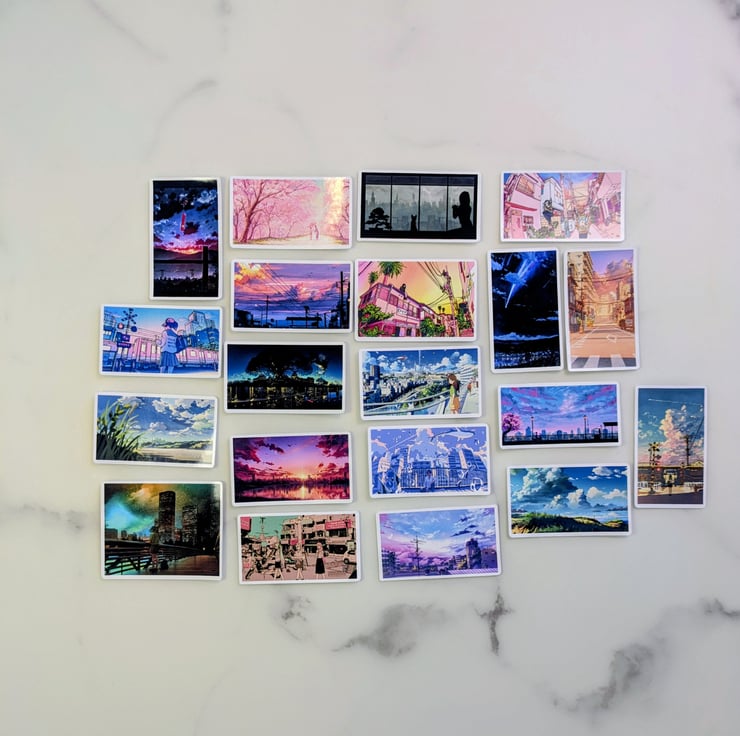 Add dreamy anime scenery and adorable characters to your collection with this kawaii sticker pack. Choose between 20 or 40 unique designs to create a soft pastel aesthetic across your favourite items.