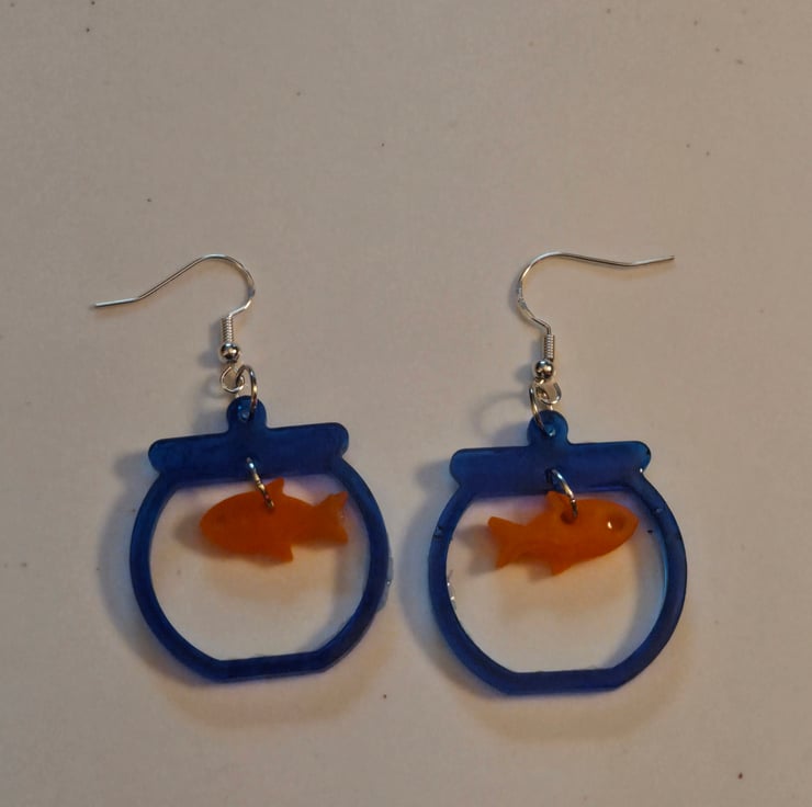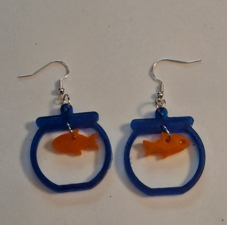 These quirky and fun fishbowl earrings are made with acrylic and on silver sterling hooks.