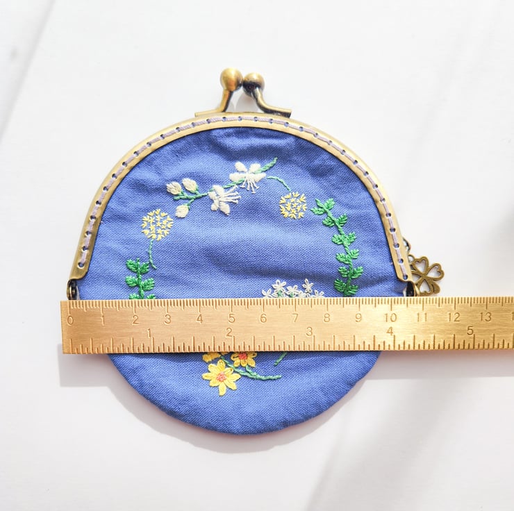 A small handmade embroidered purse, perfect for coins or little everyday items.
