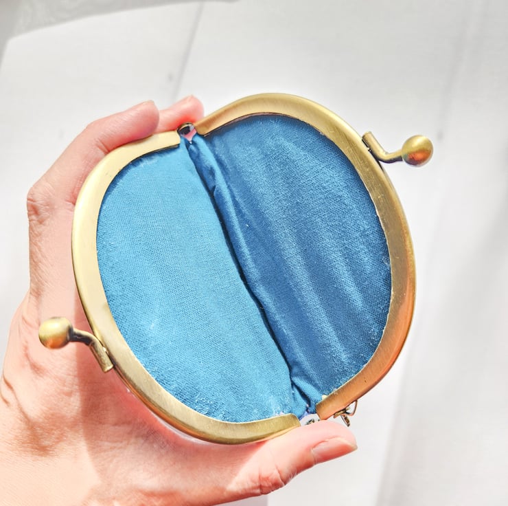 Finished with a classic metal clasp frame, it's both practical and decorative. It can be used as a coin purse, or to carry small essentials such as jewellery, earbuds, or keepsakes.