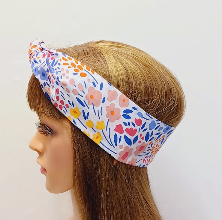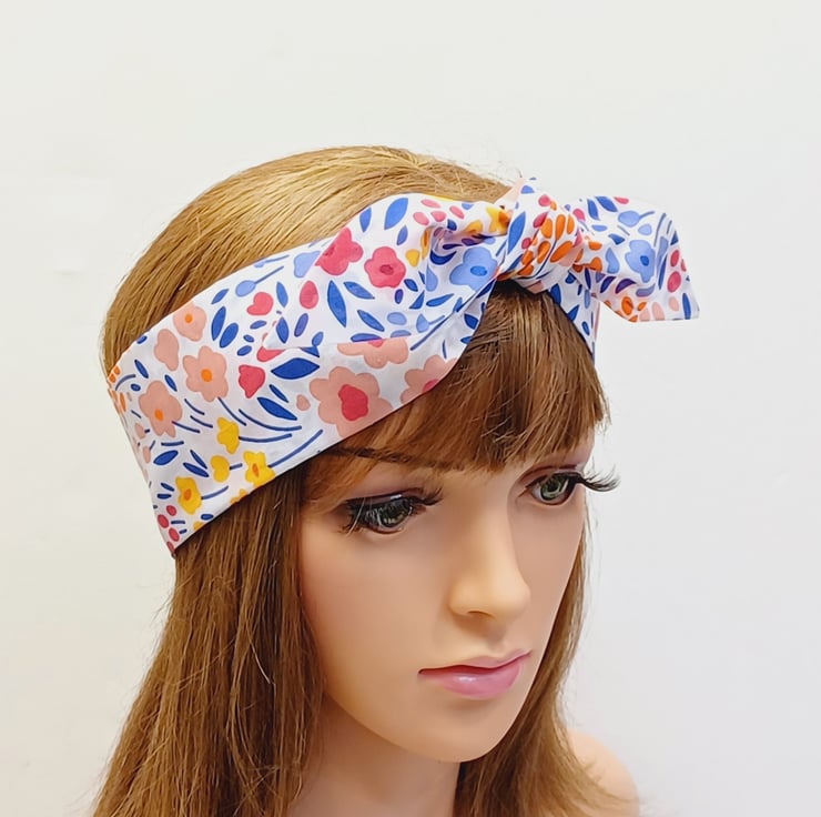 This self tie headband is made from printed polycotton fabric. The headband is NOT WIRED, NOT STRETCHY, UNTIED.