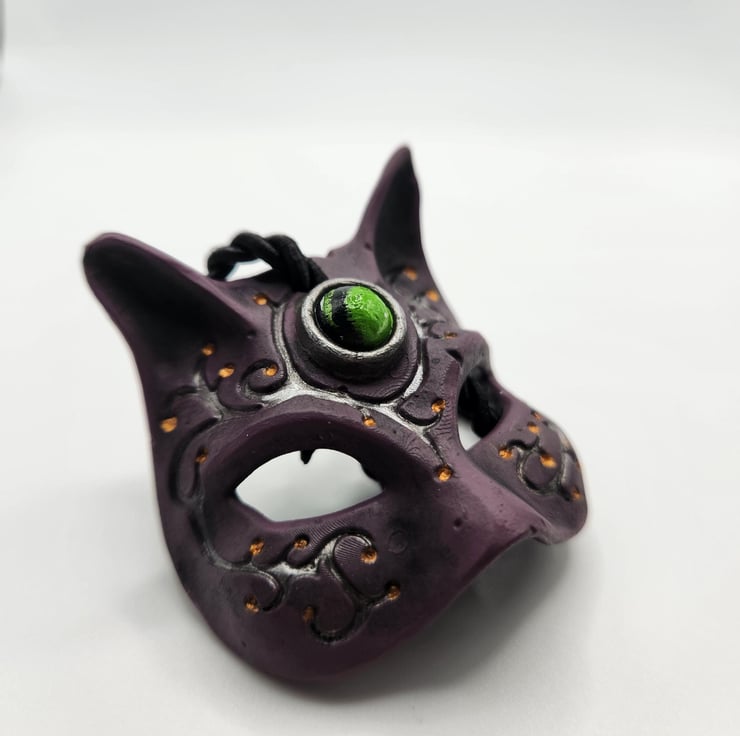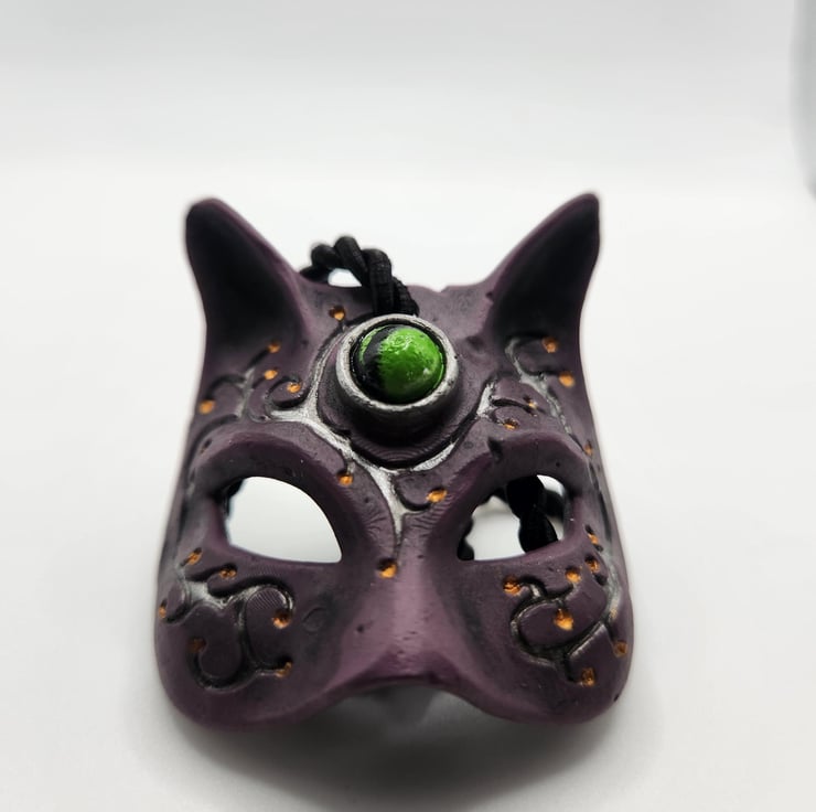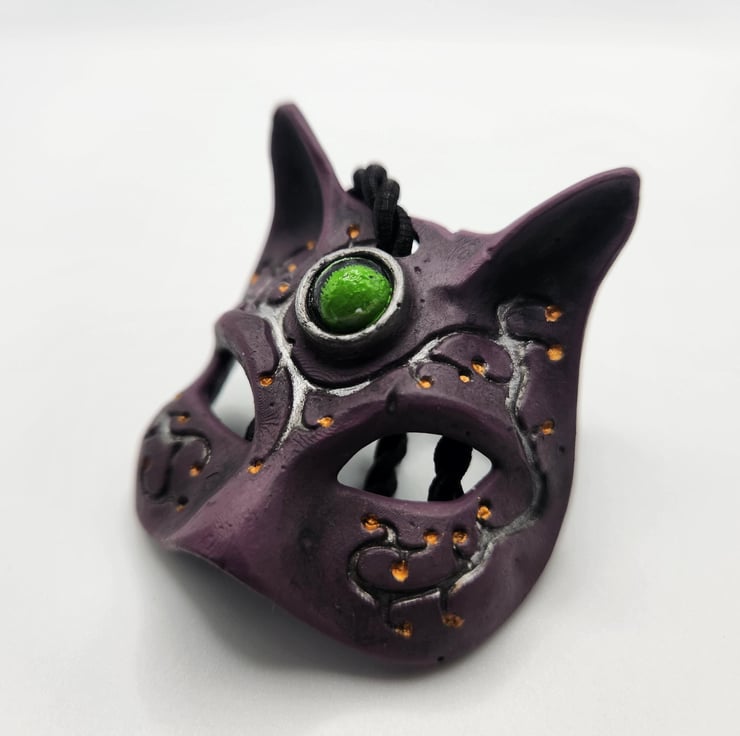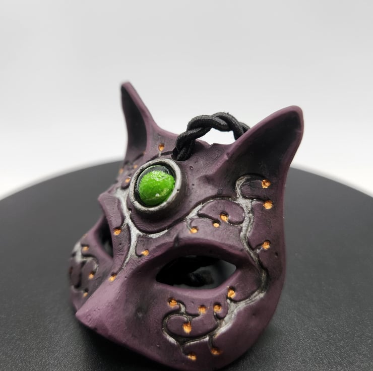 Samurai Cat Mask Rear View Mirror Charm Hand-Painted 3D Printed Car Accessory