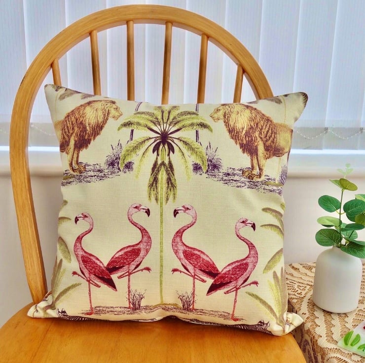 All my cushions are handmade in my home workshop, in a smoke-free clean environment. Hand cut, with both stitched and overlocked seams. As they are cut from the metre, position of pattern could vary from the photo shown.