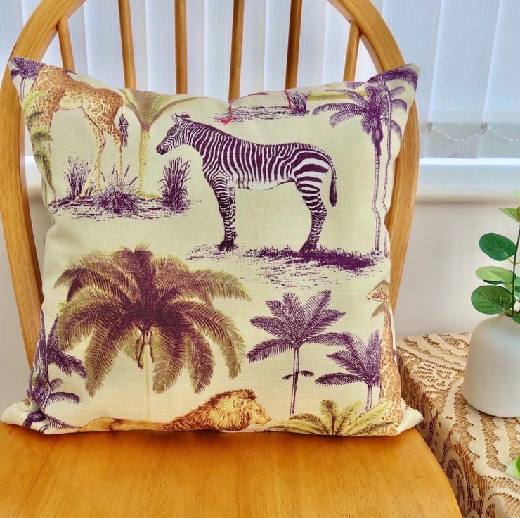 Cushion Cover - Safari Animal design on a Dark Cream background, double sided.