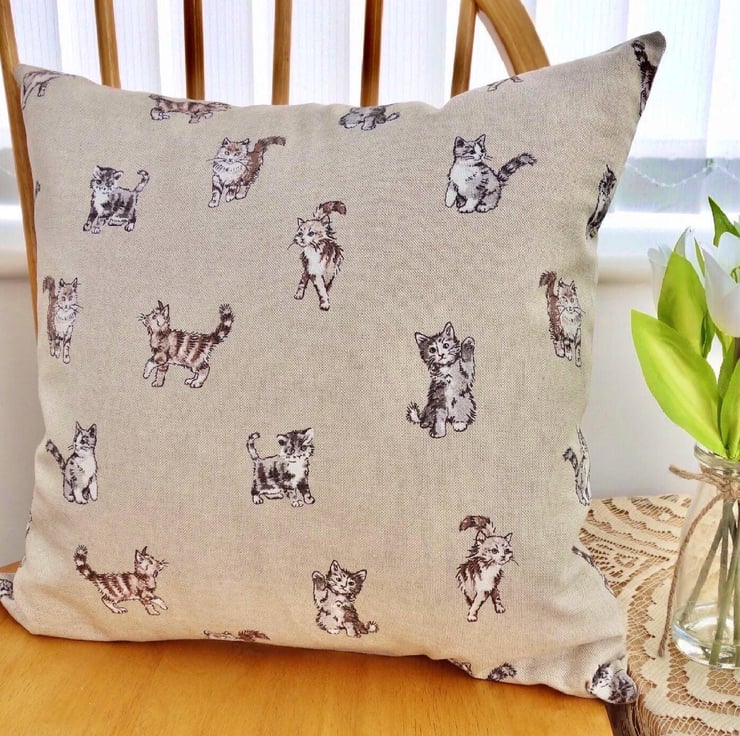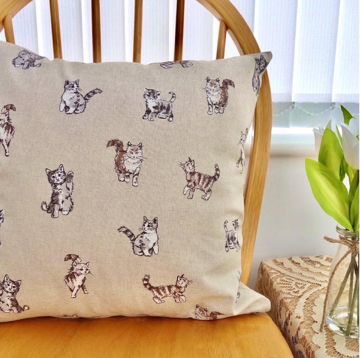 Cushion Cover - Kittens Cat design on a Beige background, double sided.