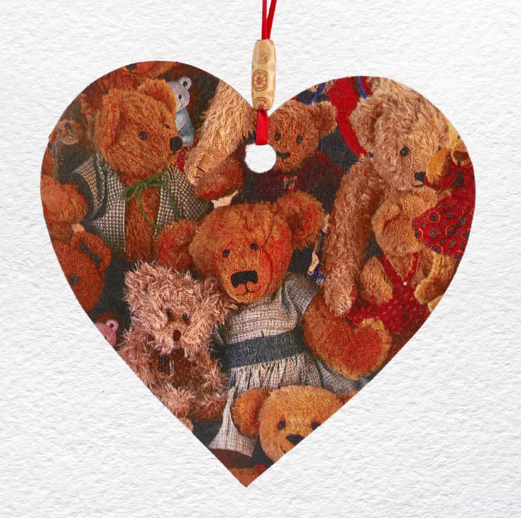 Decoupaged Wooden Hanging Heart: Teddy Bears design 15cm