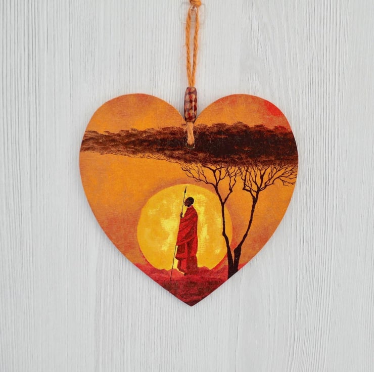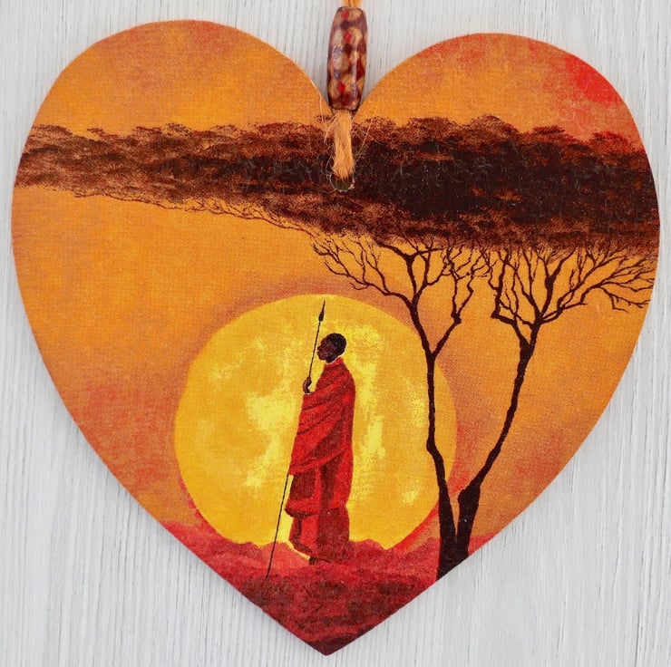 Decoupaged Wooden Hanging Heart: Silhouette design 15cm