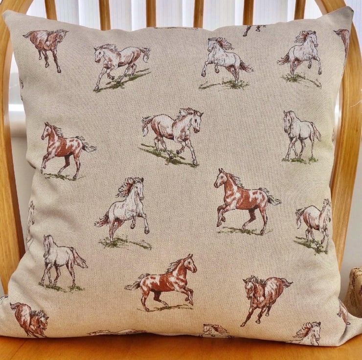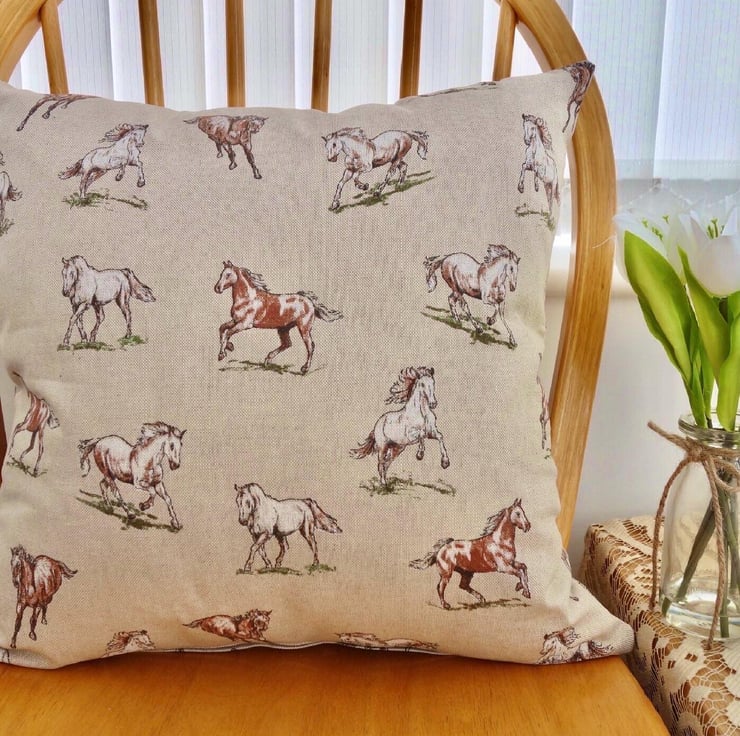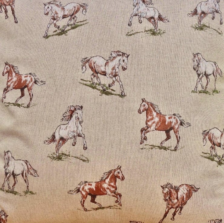 Cushion Cover - Brown & White Horses design on a Beige background, double sided.