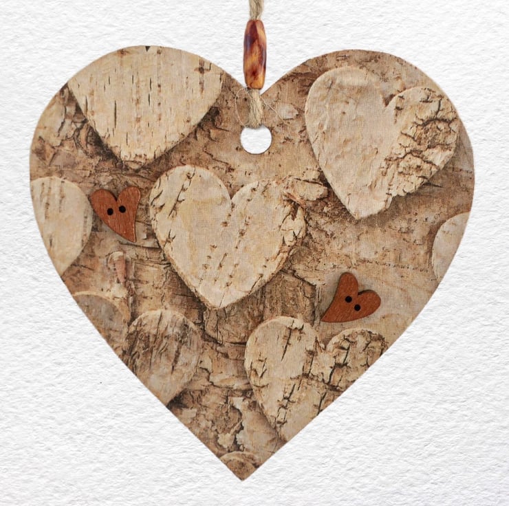 Decoupaged Wooden Hanging Heart: Cork Hearts design 15cm