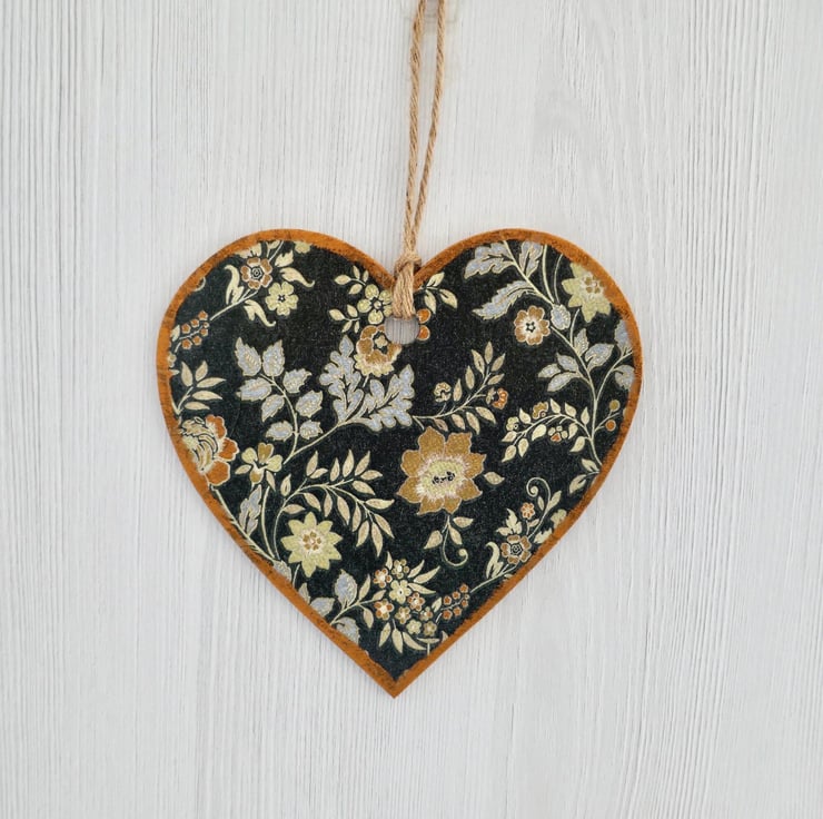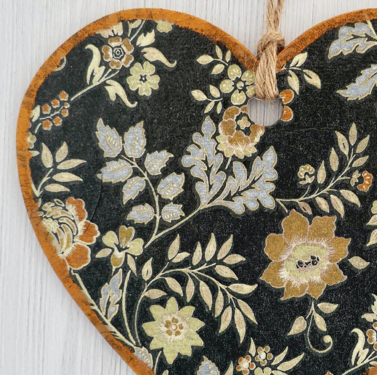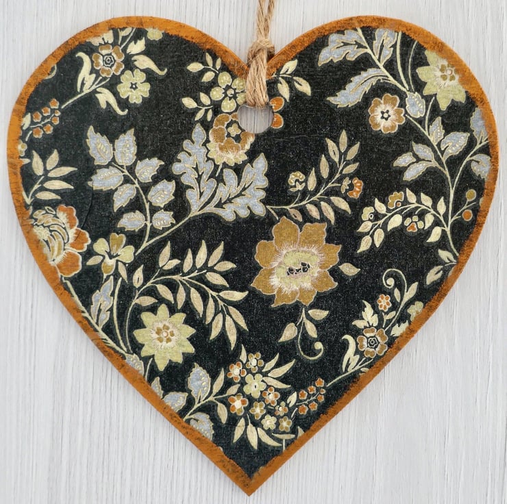 Decoupaged Wooden Hanging Heart: Floral design 15cm
