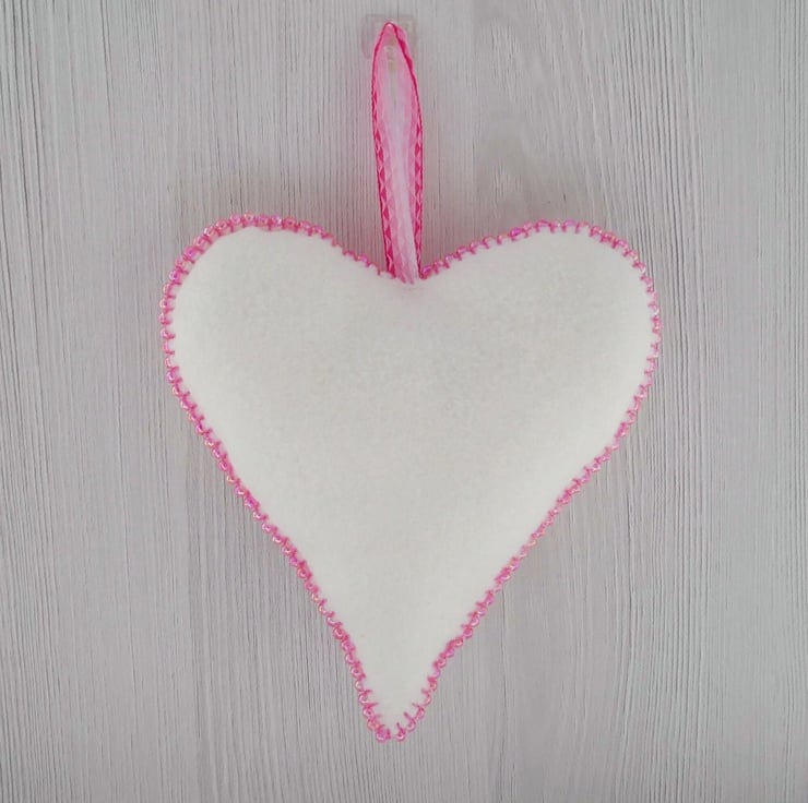 Felt Hanging Heart: Embroidered Bauble with beaded edge 16cm