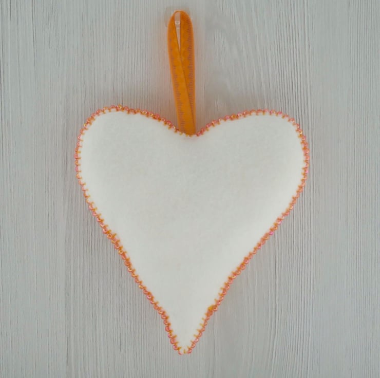 Felt Hanging Heart: Embroidered Love with beaded edge 16cm