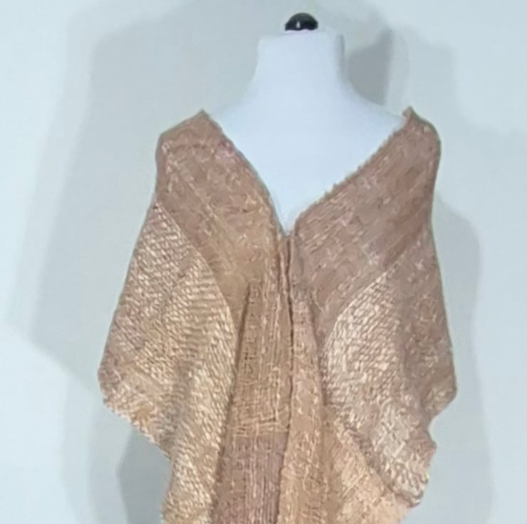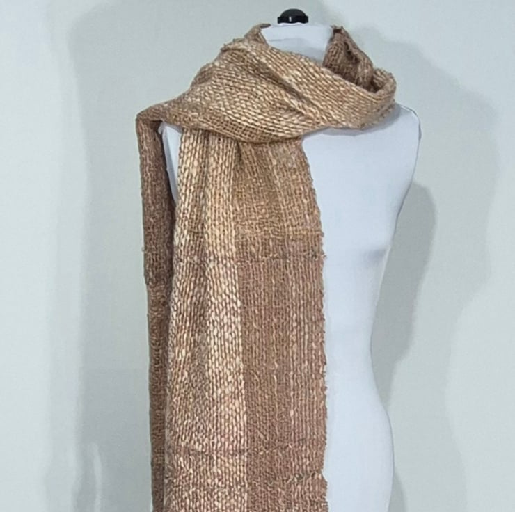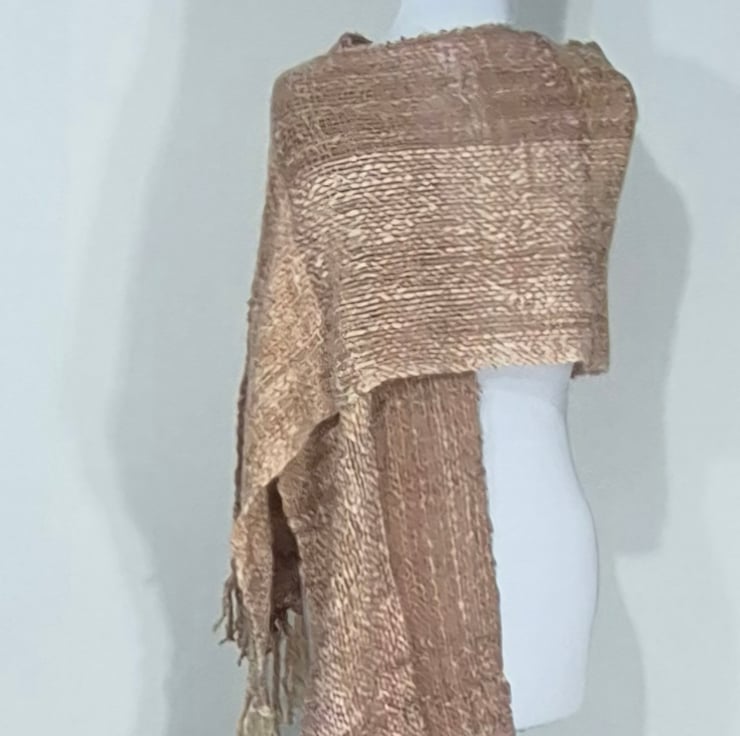 22.Handwoven Alpaca Shawl. Toffee and Peach with Cream. .