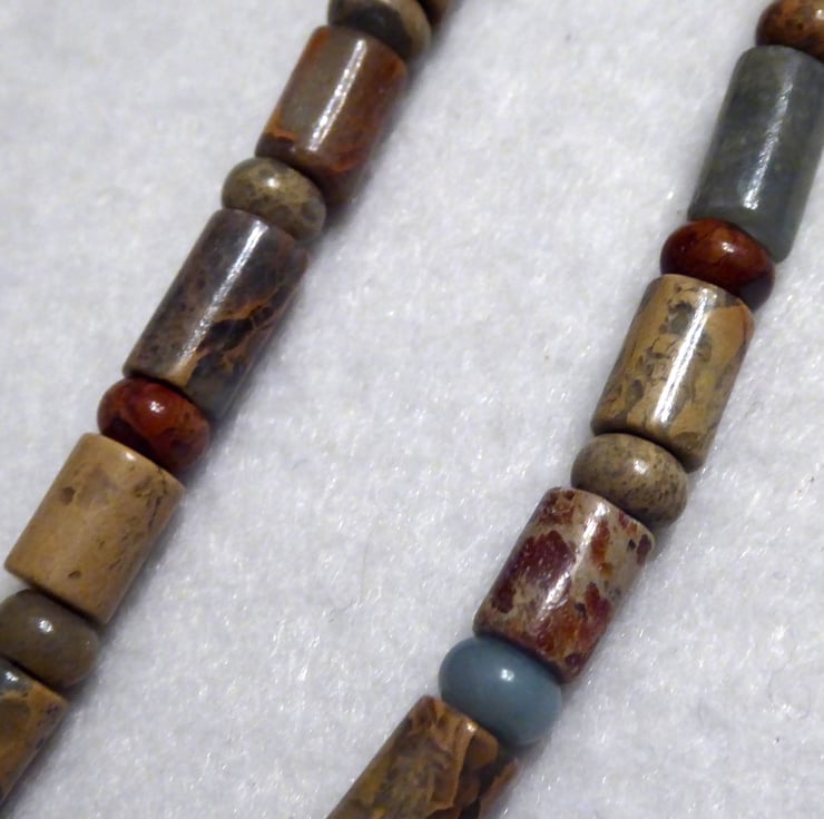 Sterling Silver & "Onyx Marble (Jasper) Gemstone Necklace