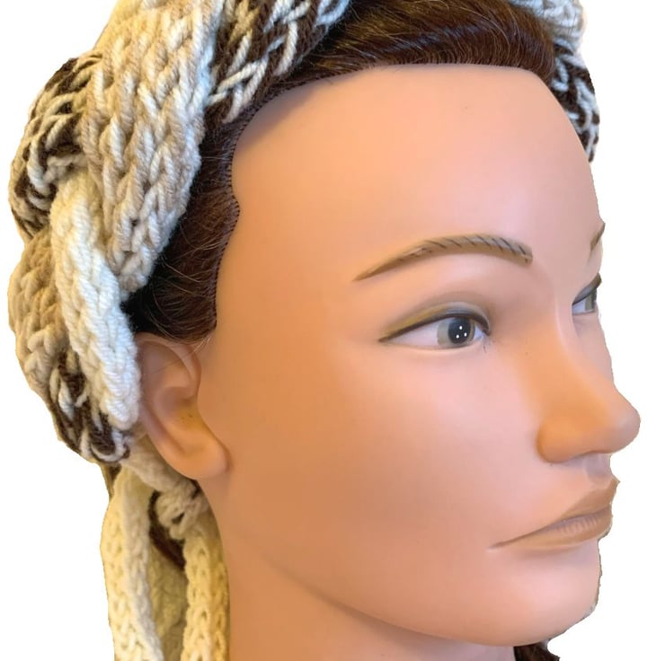 Hand Knitted Scarf Headband Multifunctional Adjustable Brown Beige Cream Plaited
